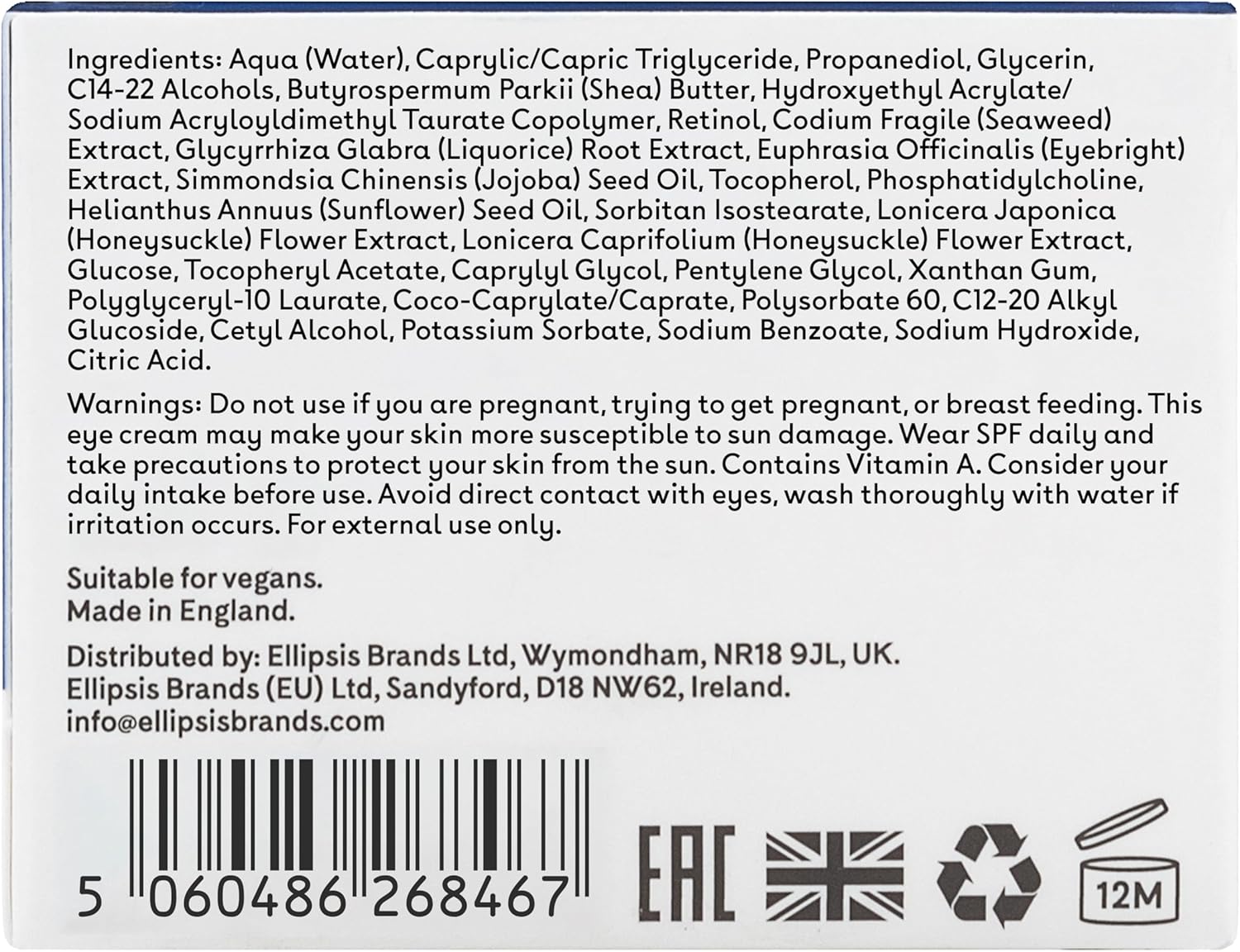 Q+A Retinol Eye Cream – Boosts Collagen, Firms & Illuminates Under-Eye With Green Seaweed & Liquorice – De-Puffs, Anti-Ageing, Vegan, Cruelty-Free, Made In Uk, Recyclable Packaging, Gentle Use, 15Ml