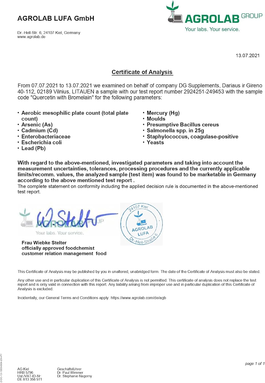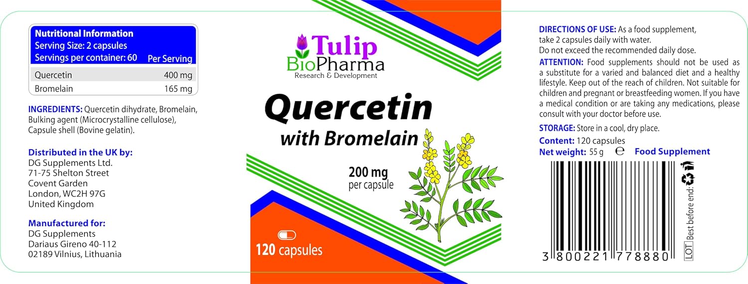 Quercetin Bromelain Complex 120 Capsules, 3Rd Party Lab Tested, High Strength Supplement
