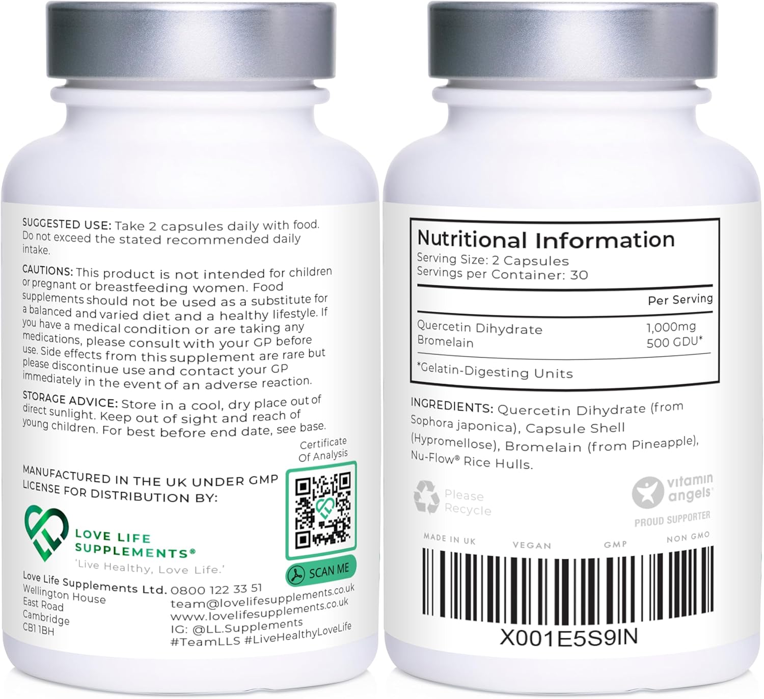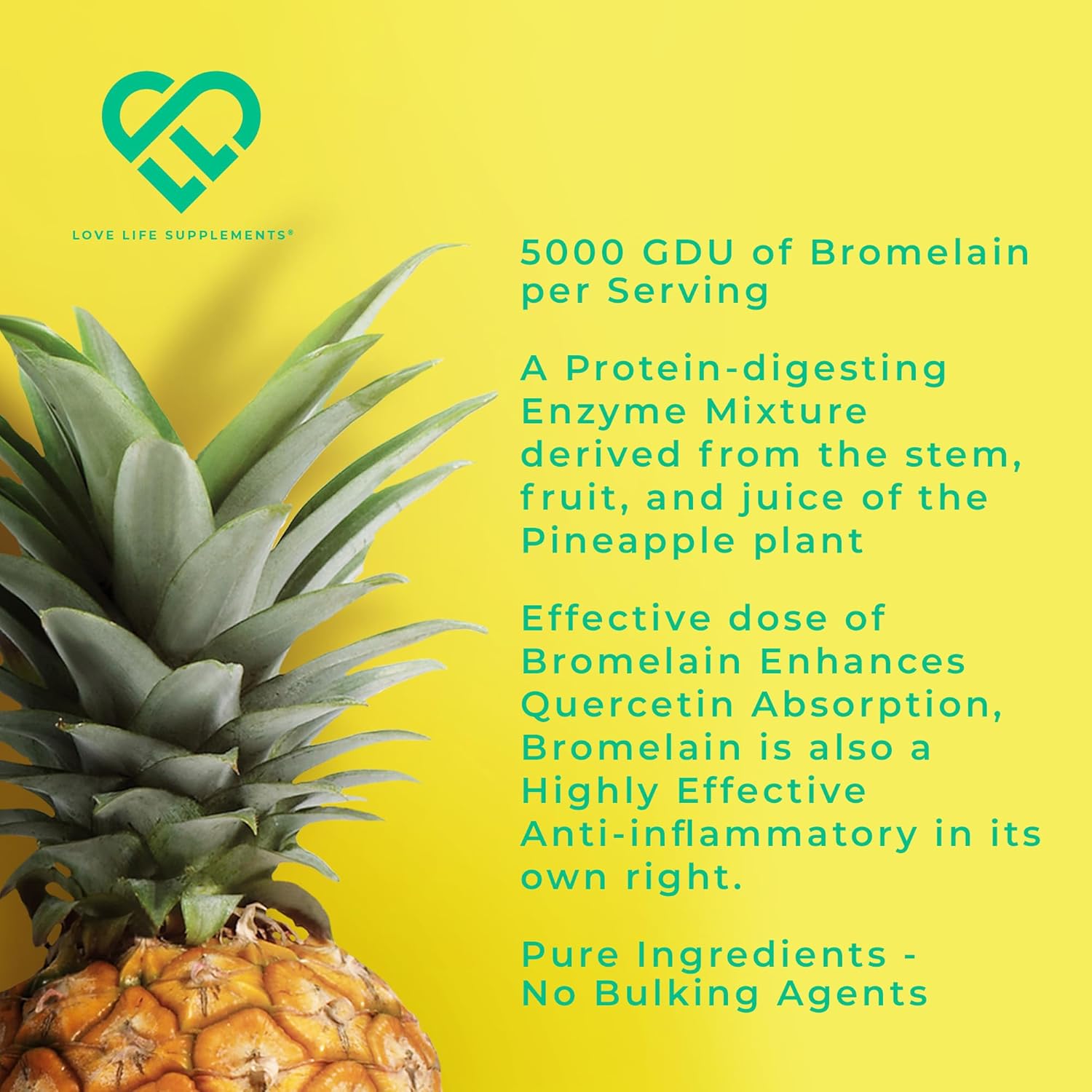 Quercetin & Bromelain Supplement | 60 Capsules -30 Servings | Powerful Antioxidant | 1000Mg Quercetin (From Sophora Japonica) And 500 Gdu Bromelain (From Pineapple) Per Serving | Love Life Supplements
