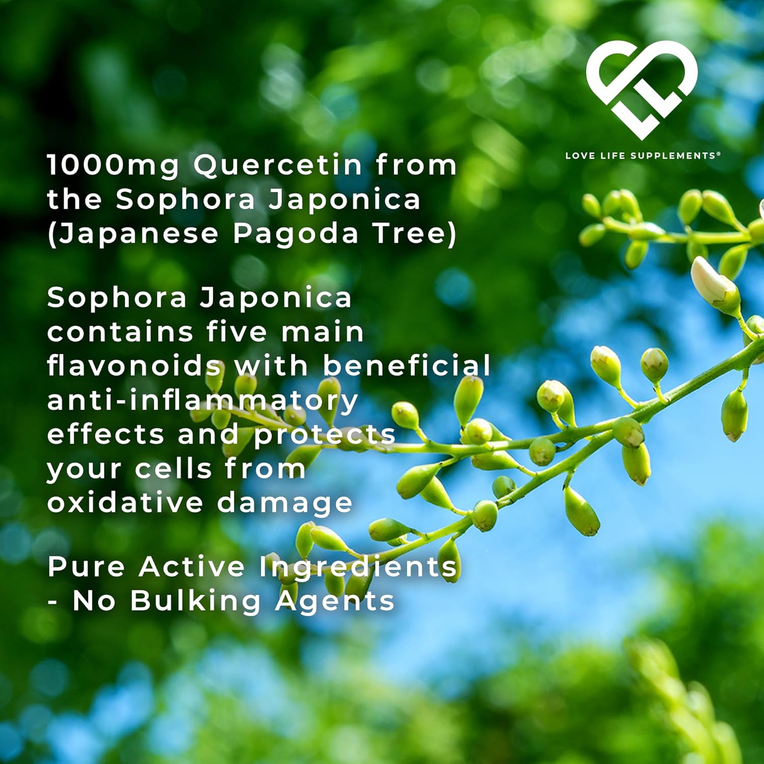 PREMIUM QUALITY QUERCETIN - Quercetin Belongs to a Group of Plant Pigments called Flavonoids that Give Many Fruits, Flowers, and Vegetables their Colours. They’ve been linked to Several Health Benefits and have Potent Antioxidant Properties. Our Product Contains 1000mg per 2 Capsule Serving of Quercetin from the Dried Flowers and Buds of the Sophora Japonica (or Japanese pagoda) Tree
