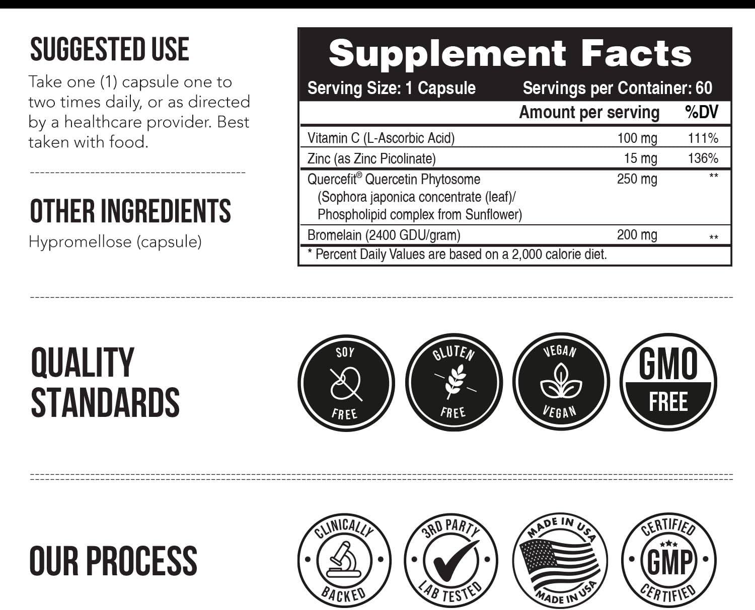 VITAMIN C & BROMELAIN COFACTOR | Vitamin C and the enzyme, Bromelain, are Quercetin co-factors that enhance the effectiveness, absorption and utilization of Quercetin within the body
