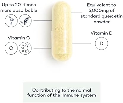 BULLET POINTS : 1 > 20x MORE ABSORBABLE THAN STANDARD QUERCETIN SUPPLEMENTS - Our Quercetin Phospholipid Complex combines quercetin with sunflower lecithin, enhancing the absorption of this unique flavonoid up to twenty times more than standard quercetin tablets making each capsule equivalent to 5,000mg of standard quercetin powder