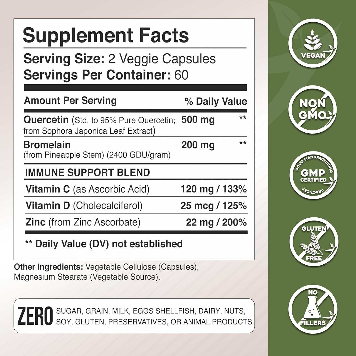 Quercetin With Vitamin C And Zinc - Quercetin 500Mg - Quercetin With Bromelain - Zinc Quercetin - 120 Veggie Caps. Quercetin Supplements + Vitamin D3 (Non-Gmo, Gluten-Free, Vegan) 2 Month Supply