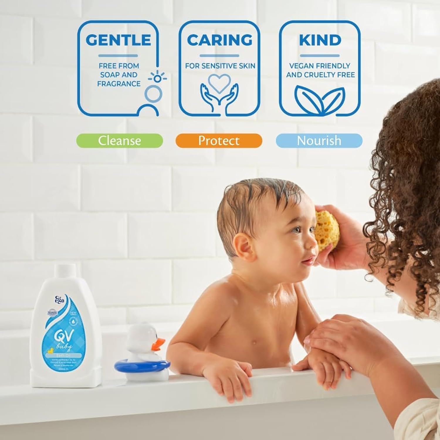 Qv Baby Bath Oil, 500Ml - With Vitamin E, Delicate, Water-Dispersible, Everyday Use, Non-Greasy For Sensitive Skin, Suitable For Face, Body & Hair, Baby Bath Wash For Eczema, Cradle Cap, Dermatitis