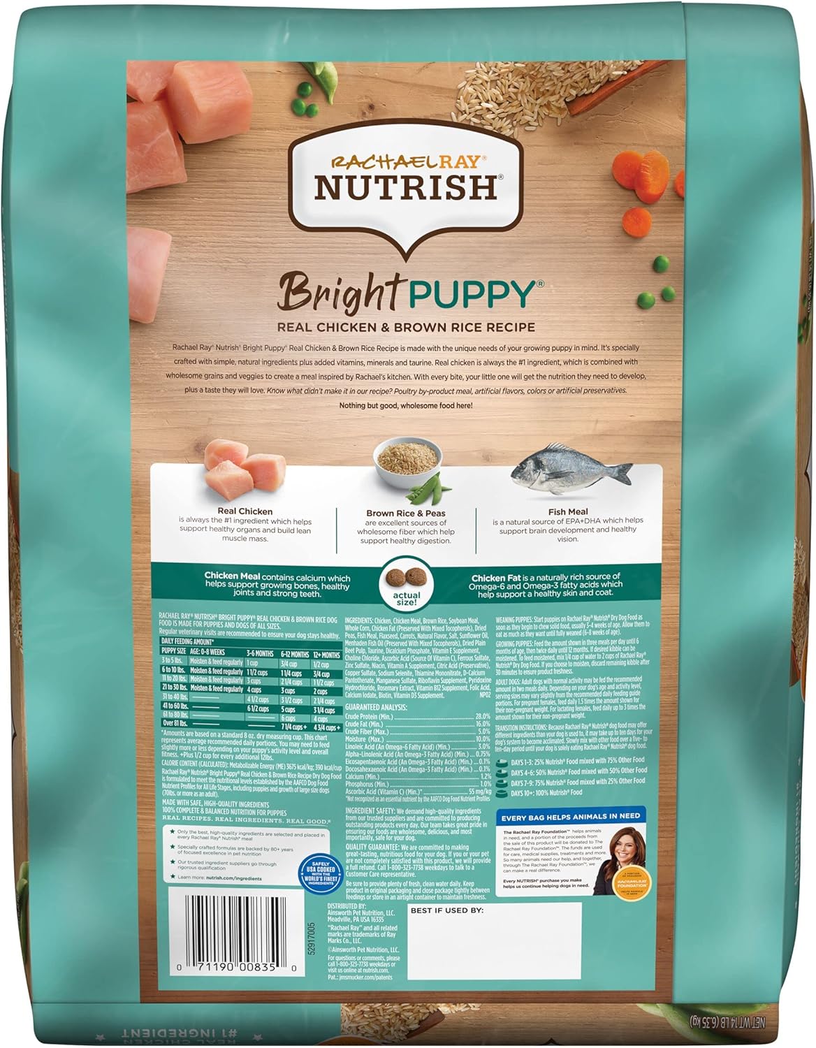 Product Description Feed Your Fur Baby A Recipe With All The Nutrition Your Puppy Needs To Grow And A Delicious, A Puppy-Approved Taste! Rachael Ray Nutrish Bright Puppy Dry Dog Food Real Chicken & Brown Rice Recipe Is A Wholesome, Chicken First Dog Food That Both You And Your Pup Will Love. Inspired By Rachael'S Kitchen, It'S Crafted With Carefully Selected Ingredients To Give Your Puppy A Strong Foundation For A Bright, Healthy Future. Check Out Some Of What Makes This High-Quality Dog Food So Tasty And Nutritious: Real Chicken, The #1 Ingredient, Helps Support Healthy Organs And Build Lean Muscle Mass. Brown Rice & Peas Are An Excellent Source Of Wholesome Fiber, Which Helps Support Healthy Digestion. Chicken Meal Contains Calcium, Which Helps Support Growing Bones, Healthy Joints And Strong Teeth. Fish Meal Is A Natural Source Of Epa+Dha Which Helps Support Brain Development And Healthy Vision. Chicken Fat Is A Naturally Rich Source Of Omega-6 And Omega-3 Fatty Acids, Which Help Support Skin And Coat Health. Know What'S Not In This Premium Puppy Food Poultry By-Product Meal Or Artificial Flavors, Colors Or Artificial Preservatives. Nothing But Good, Wholesome Food Here! Manufacturer Contact Information Ainsworth Pet Nutrition, Llc., 1 Strawberry Lane, Orrville 44667-0280