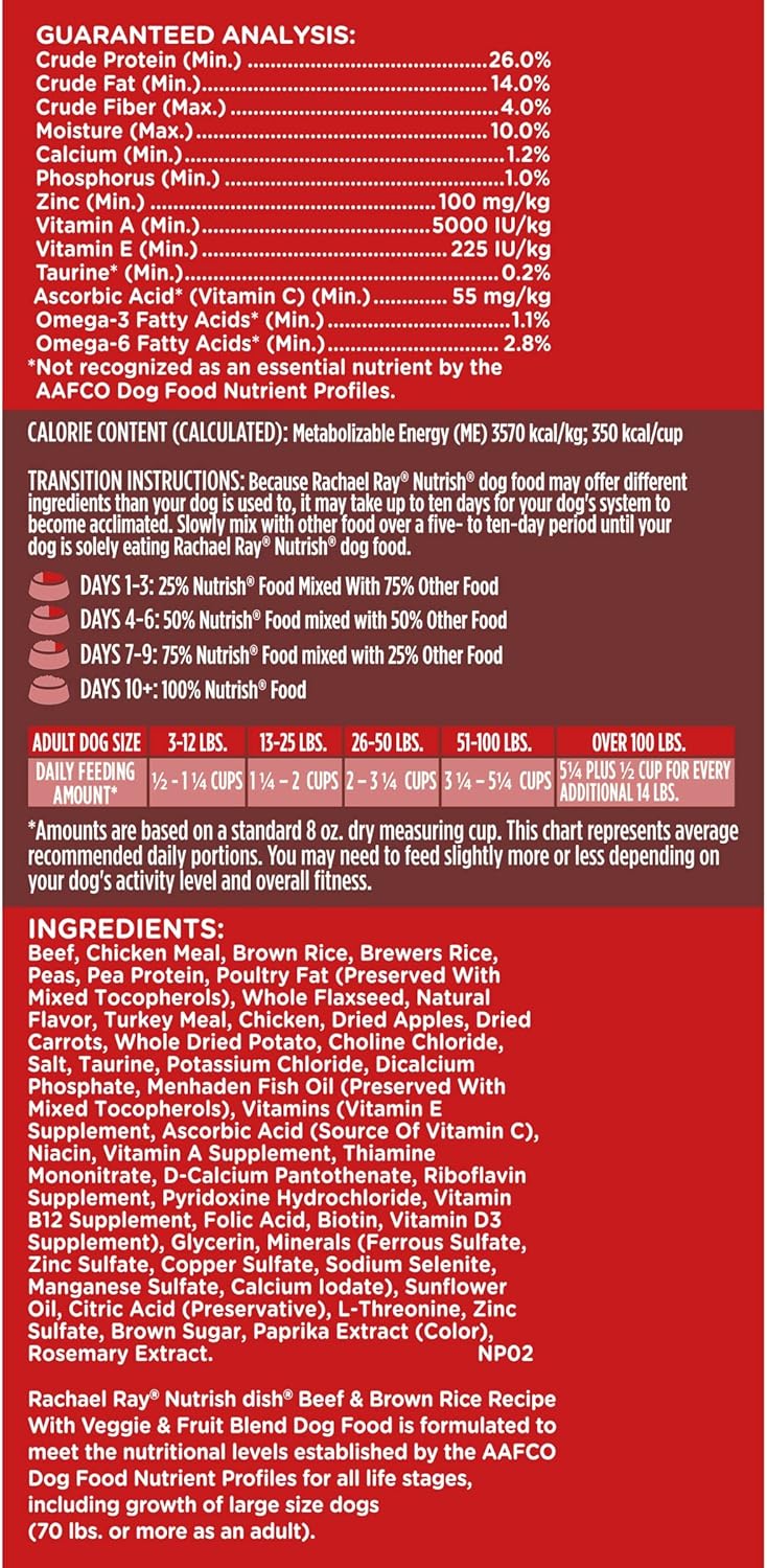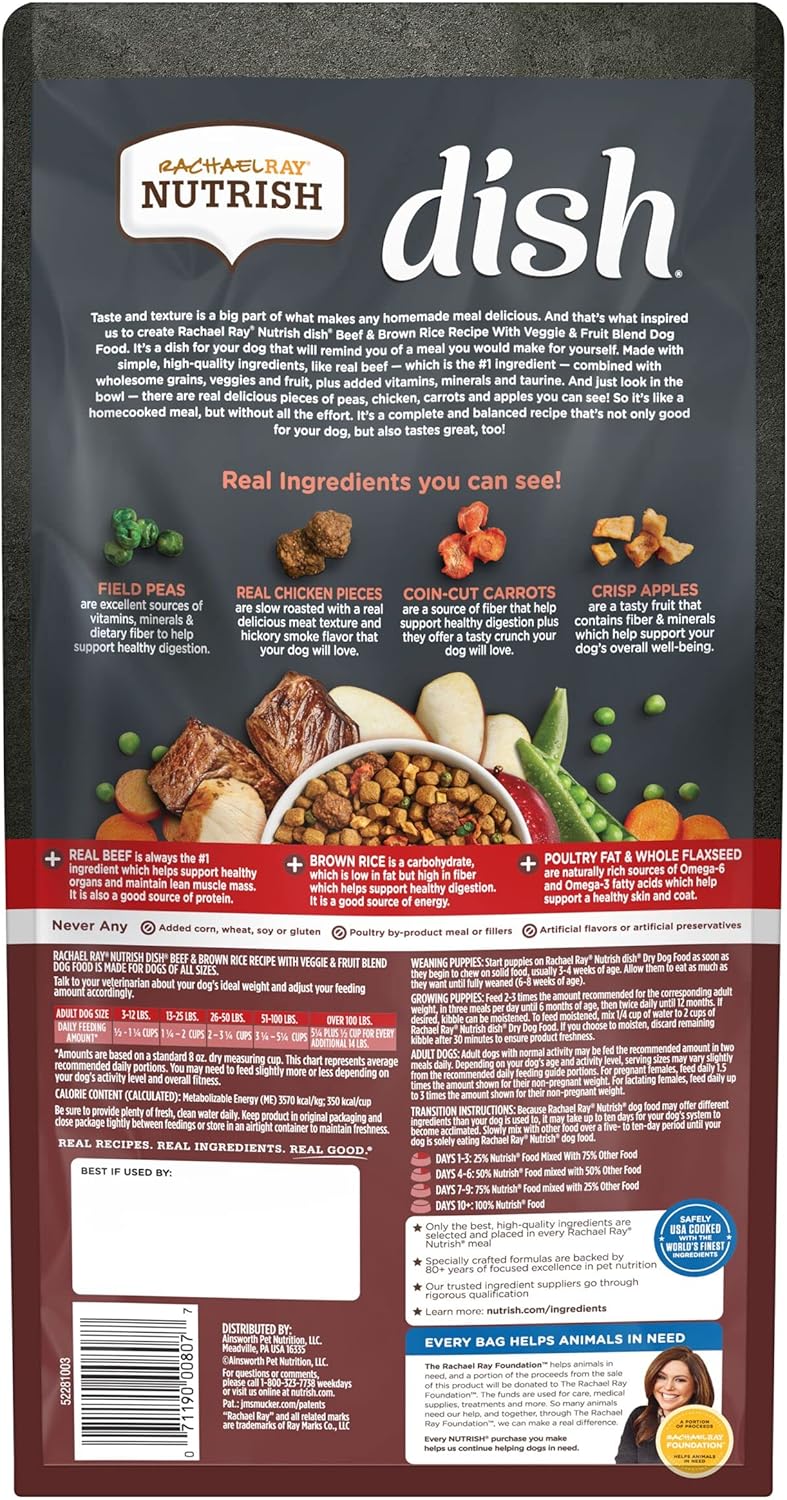 Rachael Ray Nutrish Dish Premium Natural Dry Dog Food With Added Vitamins, Minerals & Taurine, Beef & Brown Rice Recipe With Veggies, Fruit & Chicken, 3.75 Pounds
