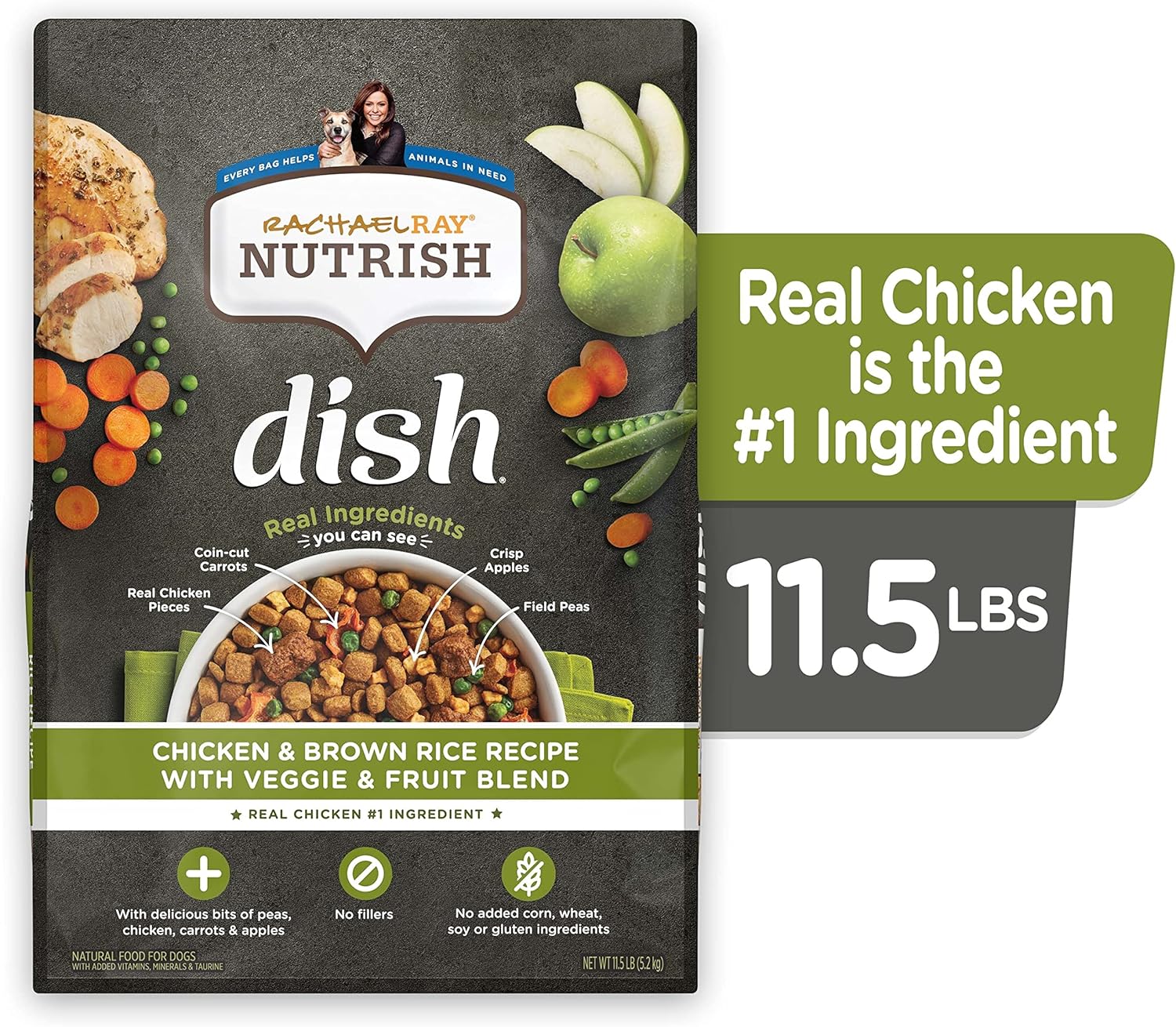 Rachael Ray Nutrish Dish Premium Natural Dry Dog Food With Added Vitamins, Minerals & Taurine, Chicken & Brown Rice Recipe With Veggies & Fruit, 11.5 Pound Bag