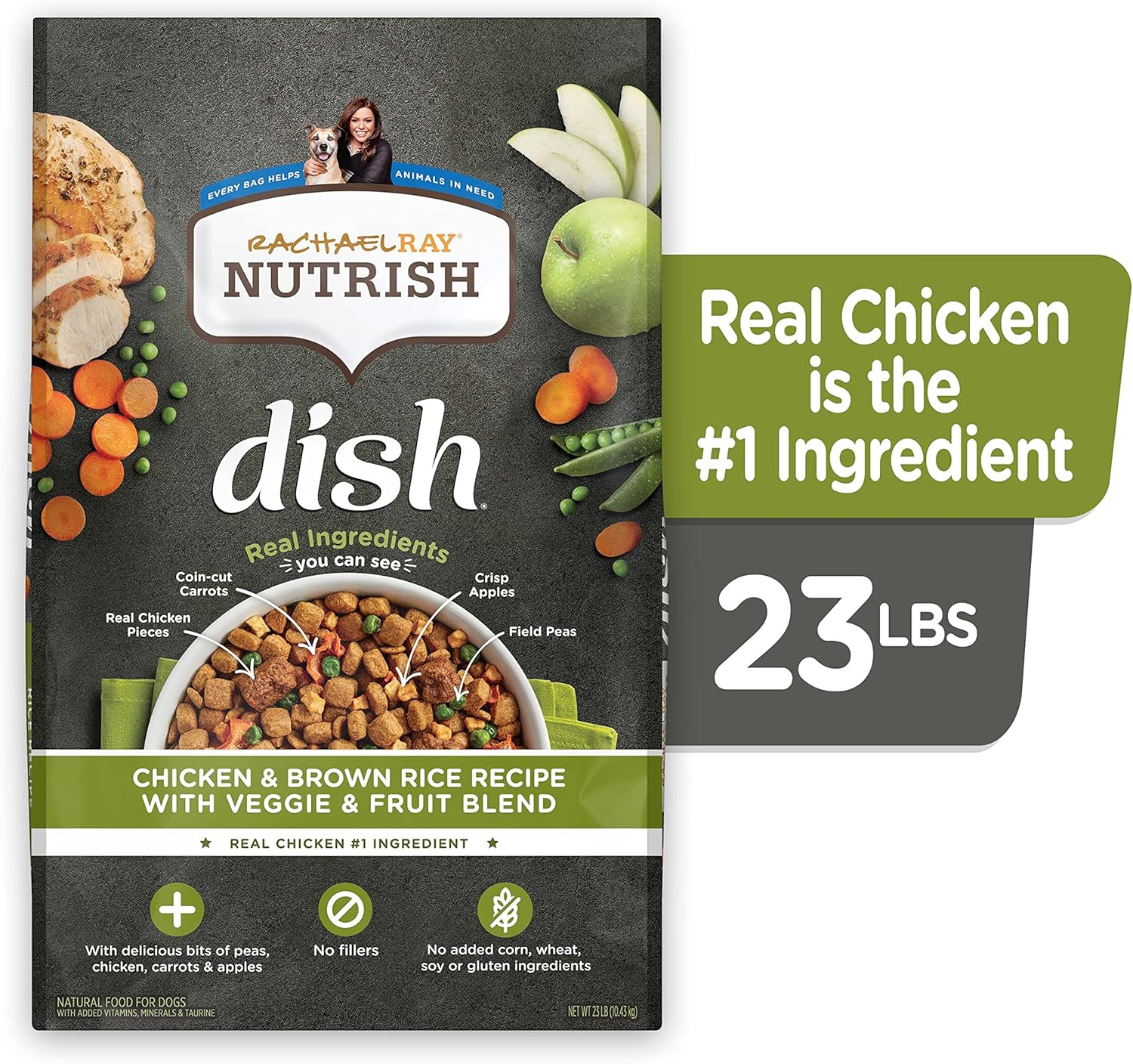 Rachael Ray Nutrish Dish Premium Natural Dry Dog Food With Added Vitamins, Minerals & Taurine, Chicken & Brown Rice Recipe With Veggies & Fruit, 23 Pound Bag