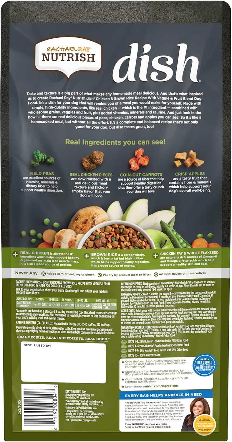 Rachael Ray Nutrish Dish Premium Natural Dry Dog Food With Added Vitamins, Minerals & Taurine, Chicken & Brown Rice Recipe With Veggies & Fruit, 3.75 Pounds