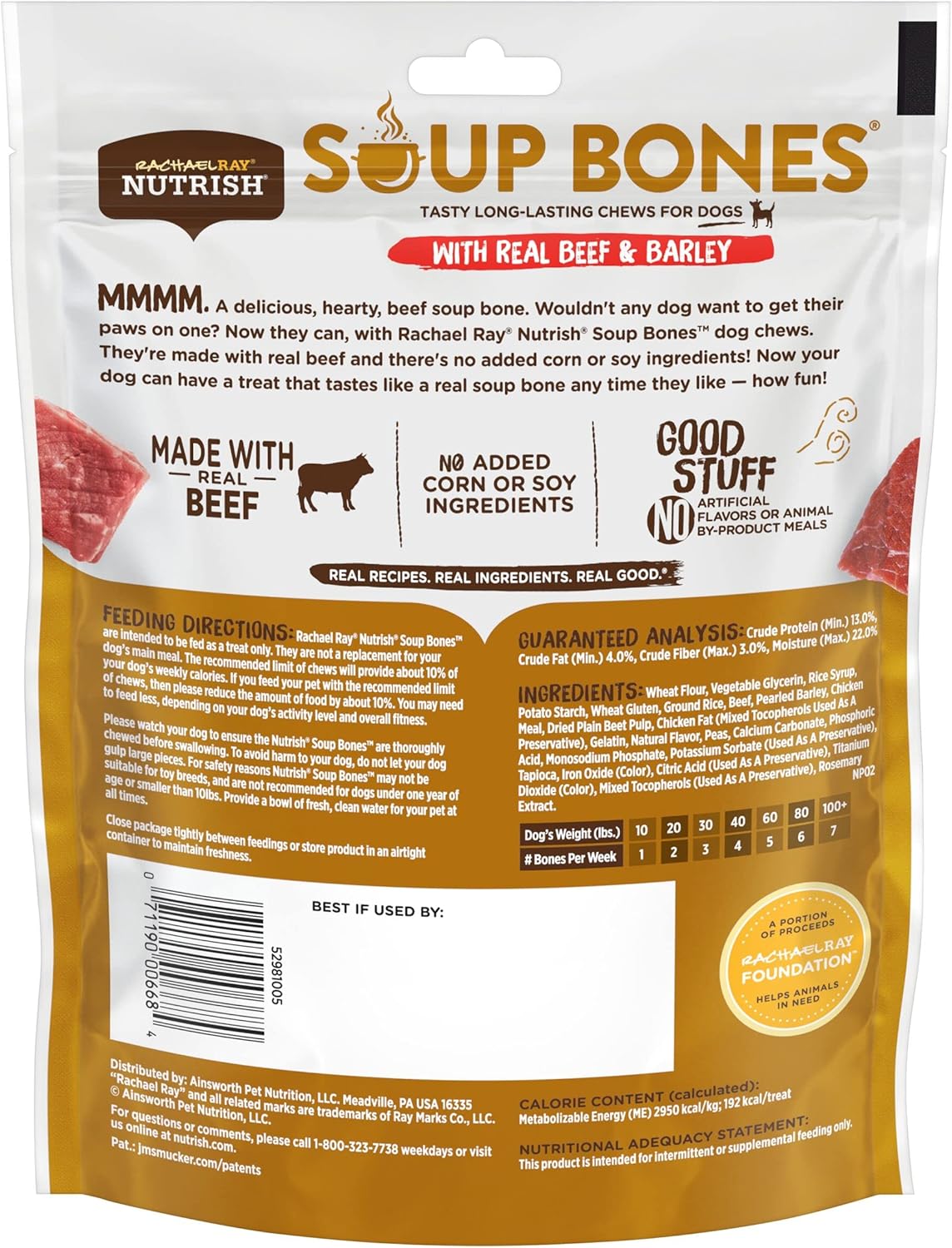 Rachael Ray Nutrish Soup Bones Dog Treats, Beef & Barley Flavor, 3 Bones (Pack Of 8)