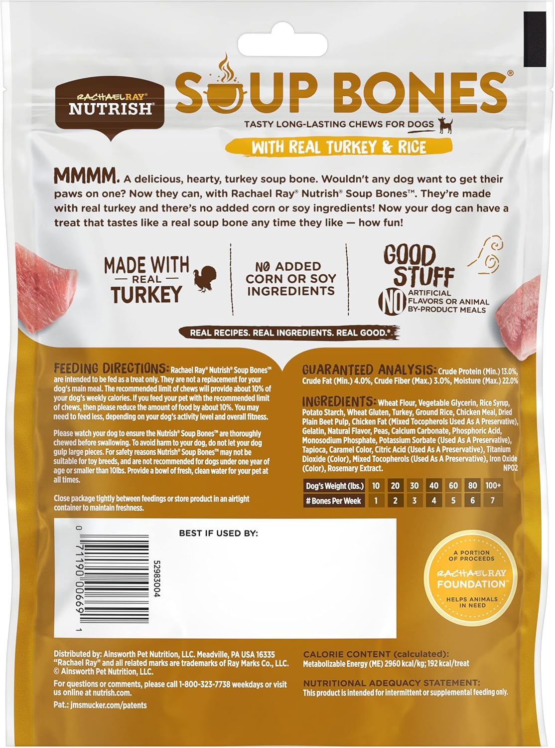 Rachael Ray Nutrish Soup Bones Dog Treats, Real Turkey & Rice Flavor, 3 Bones (Pack Of 8)