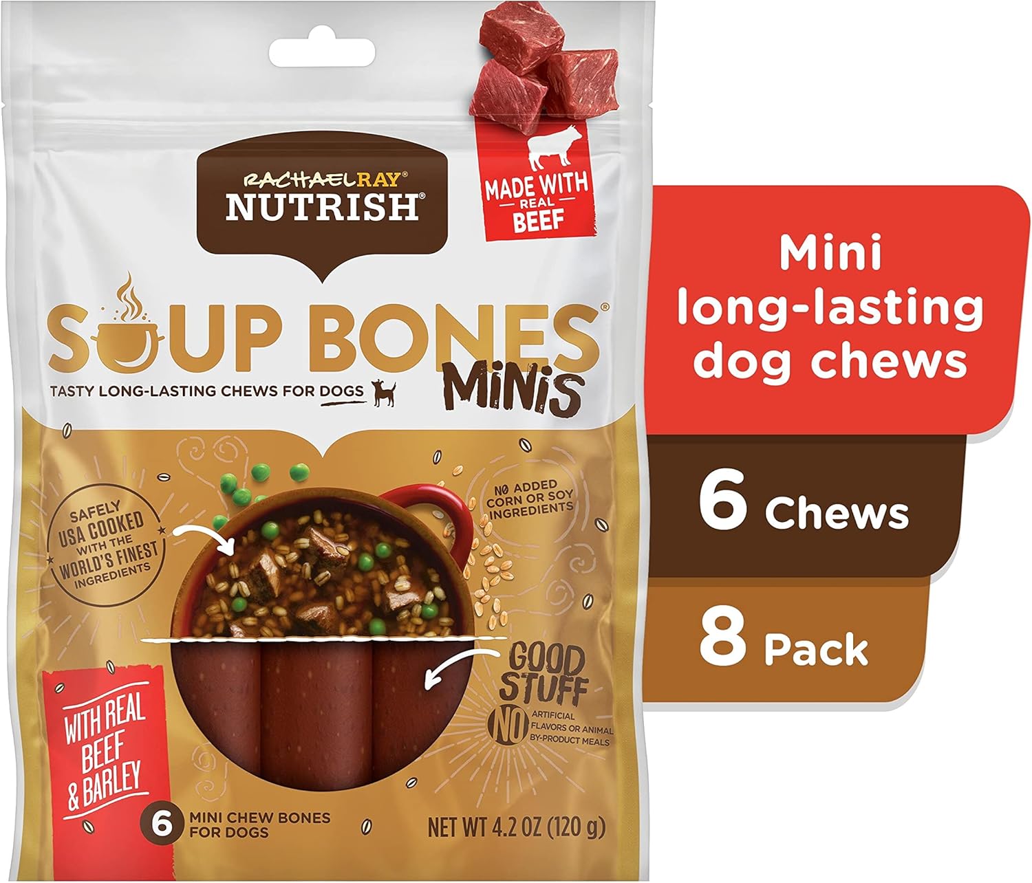 Rachael Ray Nutrish Soup Bones Minis Dog Treats, Beef & Barley Flavor, 6 Mini Bones (Pack Of 8)