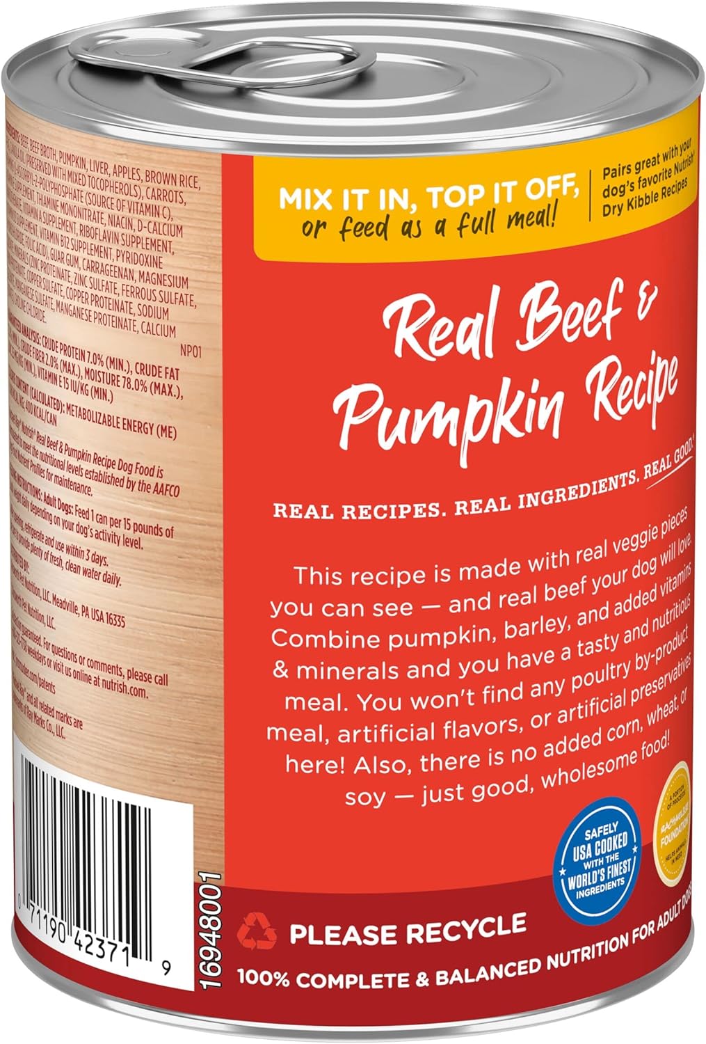 Give Your Dog A Premium Mealtime Experience In Every Dish With Rachael Ray Nutrish Real Beef & Pumpkin Recipe Wet Dog Food. This Premium PatĆ© Dog Food Is Made With Real Beef As The Number One Ingredient And Real Veggie Pieces You Can See. Combined With Pumpkin, Barley And Added Vitamins And Minerals, You Get A Tasty, Complete And Balanced Meal For Adult Dogs. It Pairs Great With Your DogāS Favorite Nutrish Dry Kibble Recipes. Mix It In, Top It Off Or Feed As A Full Meal. ThereāS No Artificial Flavors Or Artificial Preservatives In This RecipeāNo Added Corn, Wheat, Soy Or Gluten, Either. Just Good, Wholesome Food Inspired By The Heart Of RachaelāS Kitchen