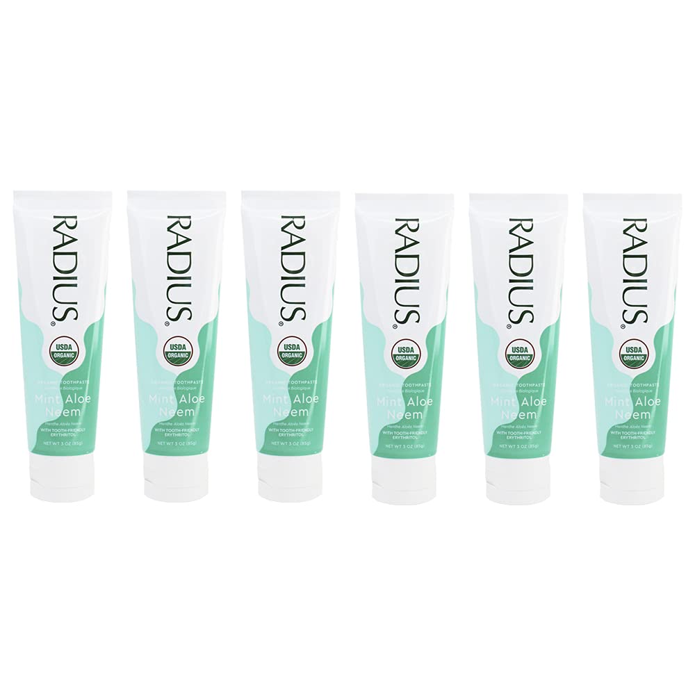 RADIUS - Organic Coconut Oil Toothpaste, USDA Organic Certified (Mint Aloe Neem, 3 oz, 6pack)