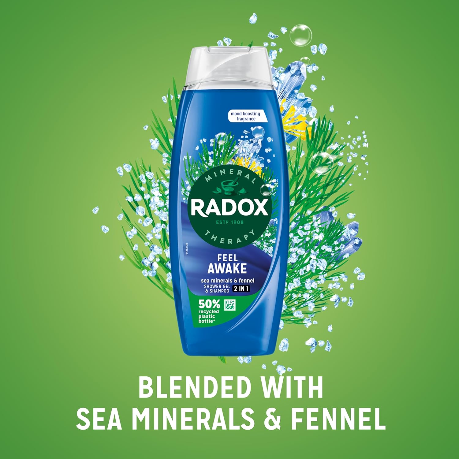 Radox Mineral Therapy Feel Awake 2-In-1 Body Wash & Shampoo Shower Gel With A Sea Mineral & Fennel Fragrance For A Refreshing Experience 450 Ml