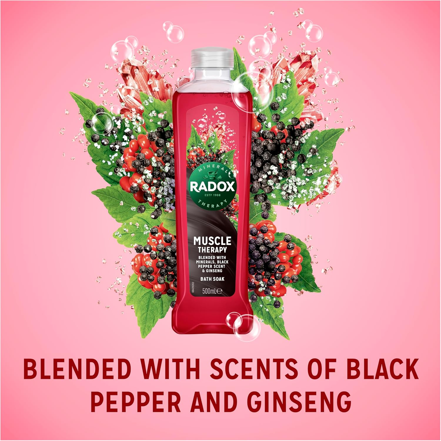 Radox Mineral Therapy Muscle Therapy Bath Soak Uniquely Blended With Minerals, Herbs, Black Pepper & Ginseng For A Rejuvenating Bubble Bath 500 Ml