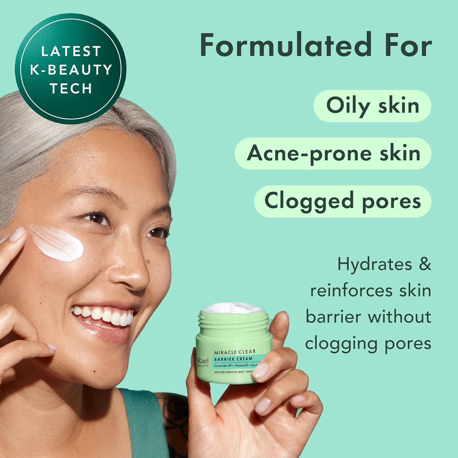 Rael Face Moisturizer, Miracle Clear Barrier Cream, Lightweight Hydration For Oily And Acne Prone, With Succinic Acid, Hydrating Vitamin B5, Vegan, Korean Skin Care (1.8 Fl Oz)