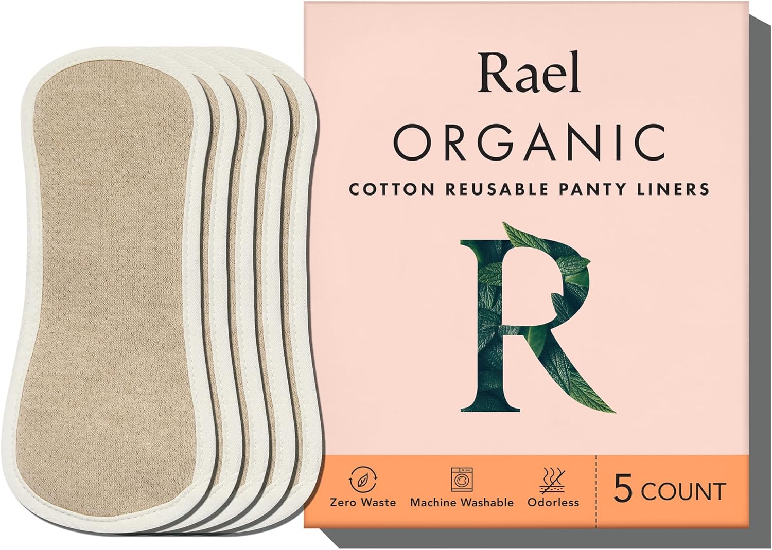 Rael Reusable Panty Liners Menstrual, Organic Cotton Cover - Postpartum Essential, Cloth Panty Liners For Women, Washable, Soft And Thin, Leak Free, Sensitive Skin (5 Count, Brown)