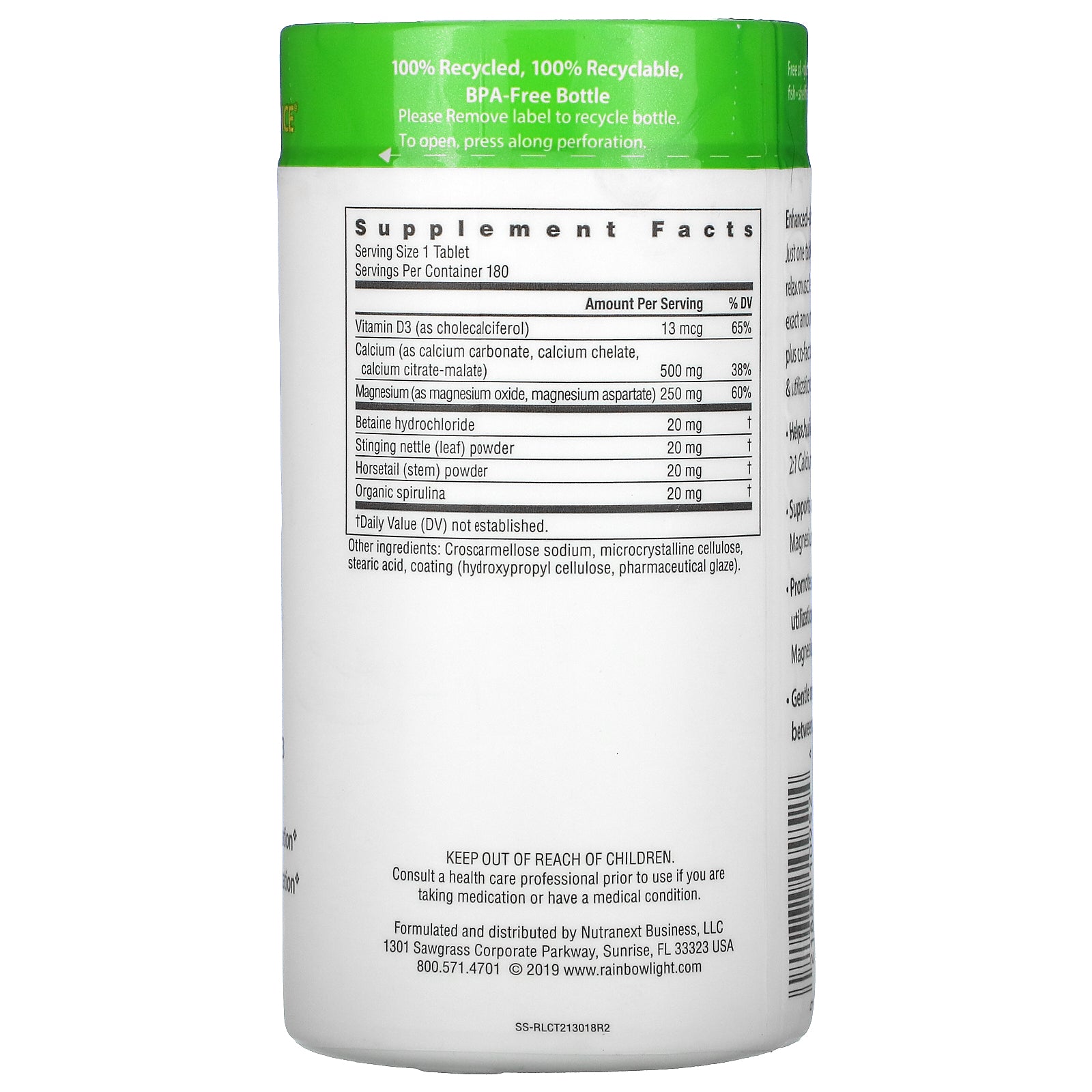 Just one tablet per day helps build bone and relax muscles. Provides 500 mg of calcium - the exact amount the body can absorb at one time - plus co-factors necessary for calcium absorption & utilization.