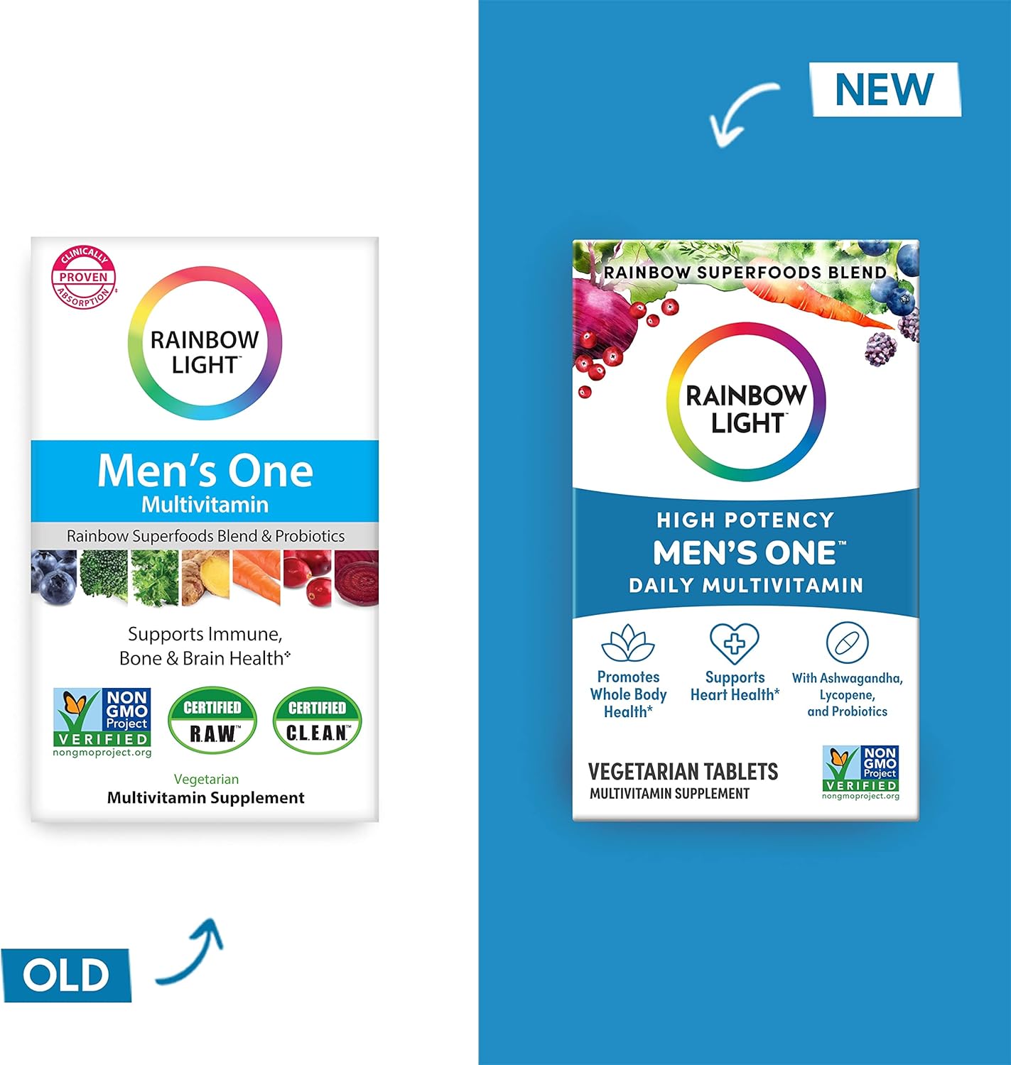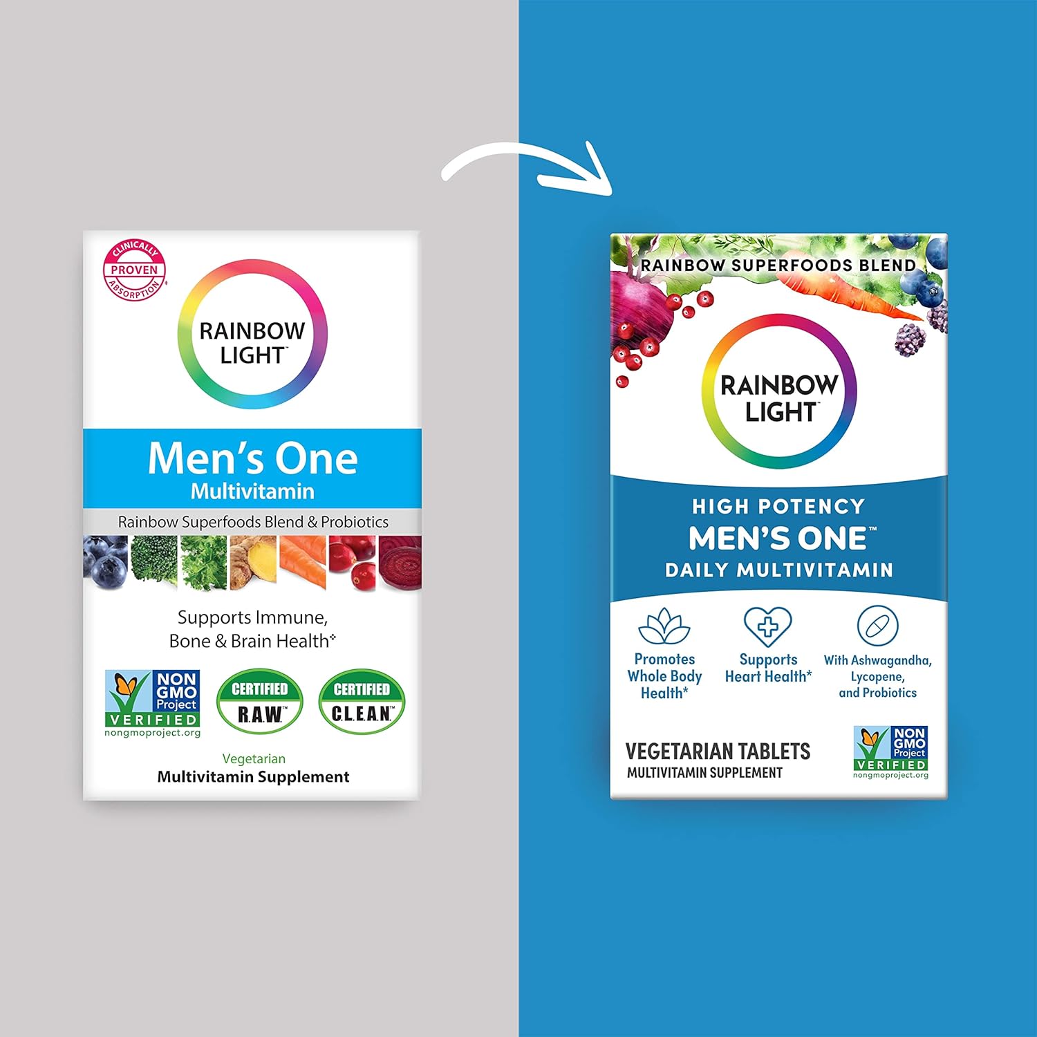 DESCRIPTION : Rainbow Light Multivitamin for Men, Vitamin C, D & Zinc, Probiotics, Men's One Multivitamin Provides High Potency Immune Support, Non-GMO, Vegetarian, 60 Tablets