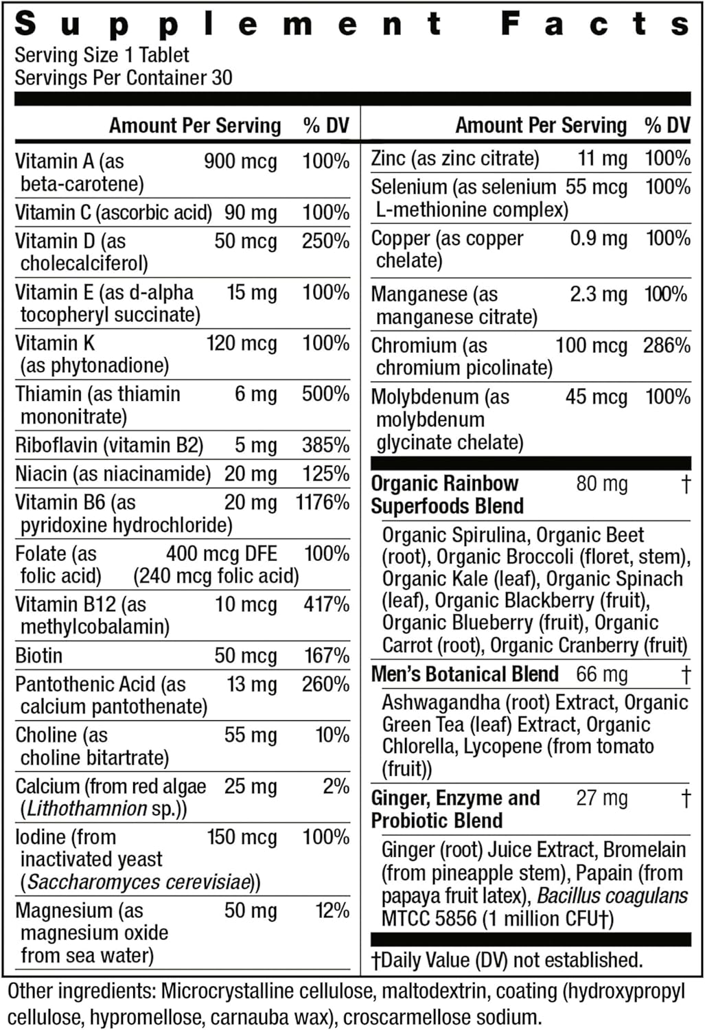 MenāS Multivitamin: Non-Gmo Project Verified, Certified C.L.E.A.N., Certified R.A.W., Vegetarian; Contains No Wheat, Milk, Tree Nuts, Peanuts, Soy, Eggs, Fish Or Shellfish
