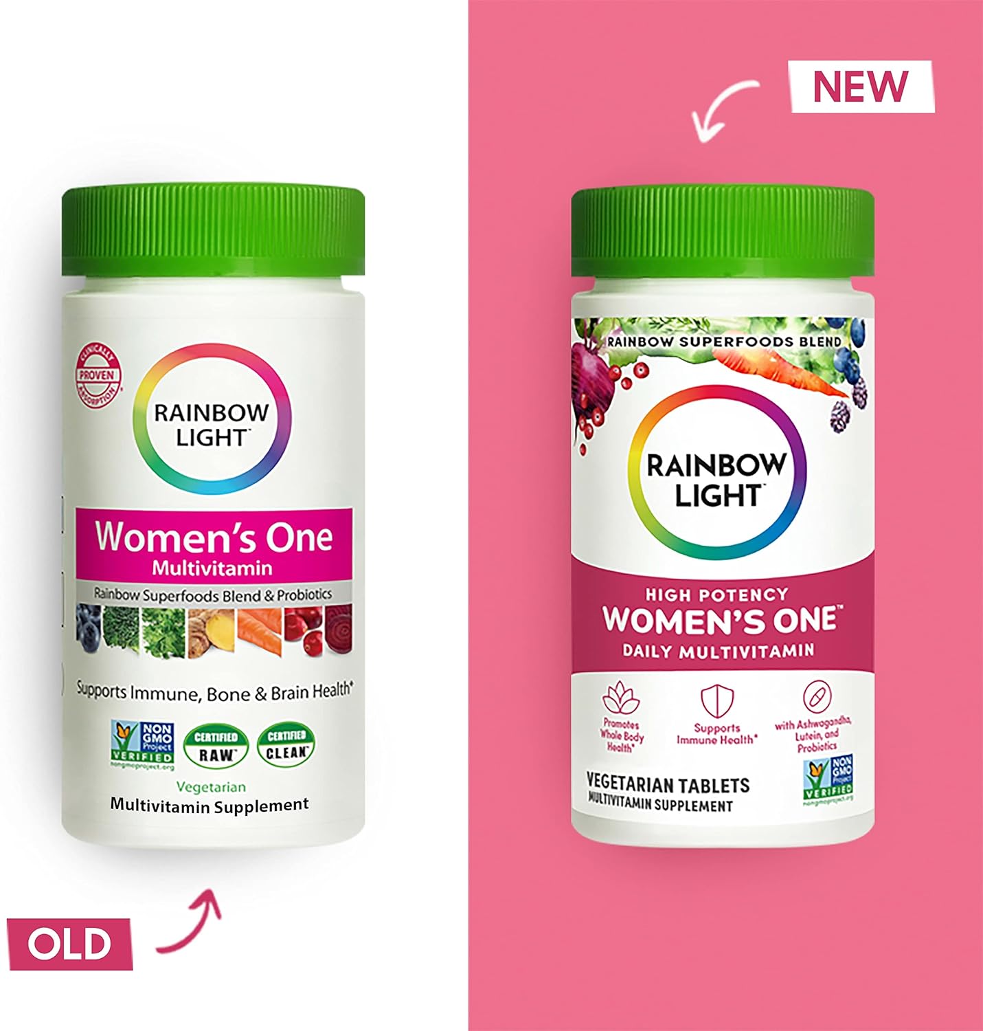 Rainbow Light Womens One High Potency Daily Multivitamin, With Ready-To-Absorb Minerals, Is Formulated To Support Optimal Nutrition And Replenishment, Giving You A Solid Foundation To Power You Forward.* This Daily Multivitamin For Women Promotes Whole Body Health And Supports Immune Health.* It Is Formulated With 100% Or More Of The Daily Value Of 19 Vitamins And Minerals. It Includes Ashwagandha, Lutein, And Probiotics; And Has More Vitamin C And Biotin Than Our Previous Womens One Multivitamin. It Contributes To Normal Energy-Yielding Metabolism, Includes Thiamin To Support Normal Heart Function, And It Also Supports Healthy Brain Function.* Vegetarian Multivitamin; Non-Gmo Project Verified; Certified C.L.E.A.N., Certified R.A.W. *These Statements Have Not Been Evaluated By The Food And Drug Administration. This Product Is Not Intended To Diagnose, Treat, Cure, Or Prevent Any Disease; **When Compared To Our Previous Womens One Multivitamin