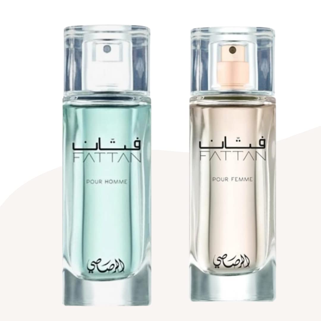 About this item Rasasi Fattan for Men opens with a refreshing blend of grapefruit, pink pepper, and bergamot, offering a crisp and energizing start. The heart of Rasasi Fattan for Men features a rich combination of cedar, vetiver, patchouli, and lily-of-the-valley, adding depth and complexity. With base notes of oakmoss, benzoin, and amber, Rasasi Fattan for Men leaves a warm, earthy, and refined finish that's perfect for any season. Rasasi Fattan for Women opens with a refreshing blend of bergamot, pink pepper, and lemon, creating a vibrant and citrusy first impression. The heart of Rasasi Fattan for Women features a sophisticated floral mix of lily-of-the-valley, patchouli, vetiver, and cedar, adding depth and complexity to the fragrance. Rasasi Fattan for Women finishes with a warm, earthy base of amber, benzoin, and oakmoss, providing a smooth, inviting trail. See more product details,Rasasi Fattan for Men opens with a refreshing blend of grapefruit, pink pepper, and bergamot, offering a crisp and energizing start,The heart of Rasasi Fattan for Men features a rich combination of cedar, vetiver, patchouli, and lily-of-the-valley, adding depth and complexity,With base notes of oakmoss, benzoin, and amber, Rasasi Fattan for Men leaves a warm, earthy, and refined finish that's perfect for any season,Rasasi Fattan for Women opens with a refreshing blend of bergamot, pink pepper, and lemon, creating a vibrant and citrusy first impression,The heart of Rasasi Fattan for Women features a sophisticated floral mix of lily-of-the-valley, patchouli, vetiver, and cedar, adding depth and complexity to the fragrance,Rasasi Fattan for Women finishes with a warm, earthy base of amber, benzoin, and oakmoss, providing a smooth, inviting trail