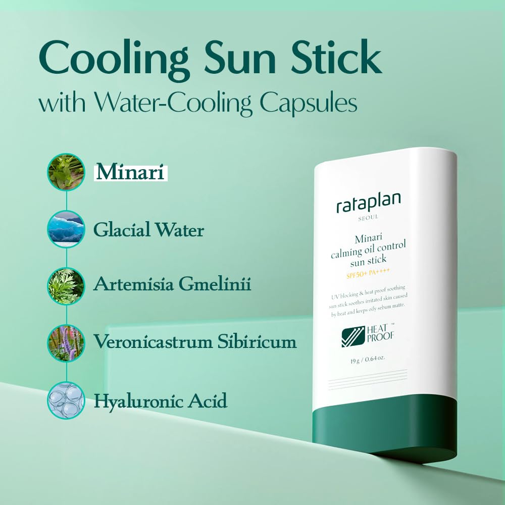 Rataplan Minari Calming Oil Control Sun Stick Spf 50+ Pa++++ - Korean Sunscreen Stick For Face, Matte Sunscreen For Oily Skin, Reef Safe, Broad Spectrum, No White Cast, Korean Skincare