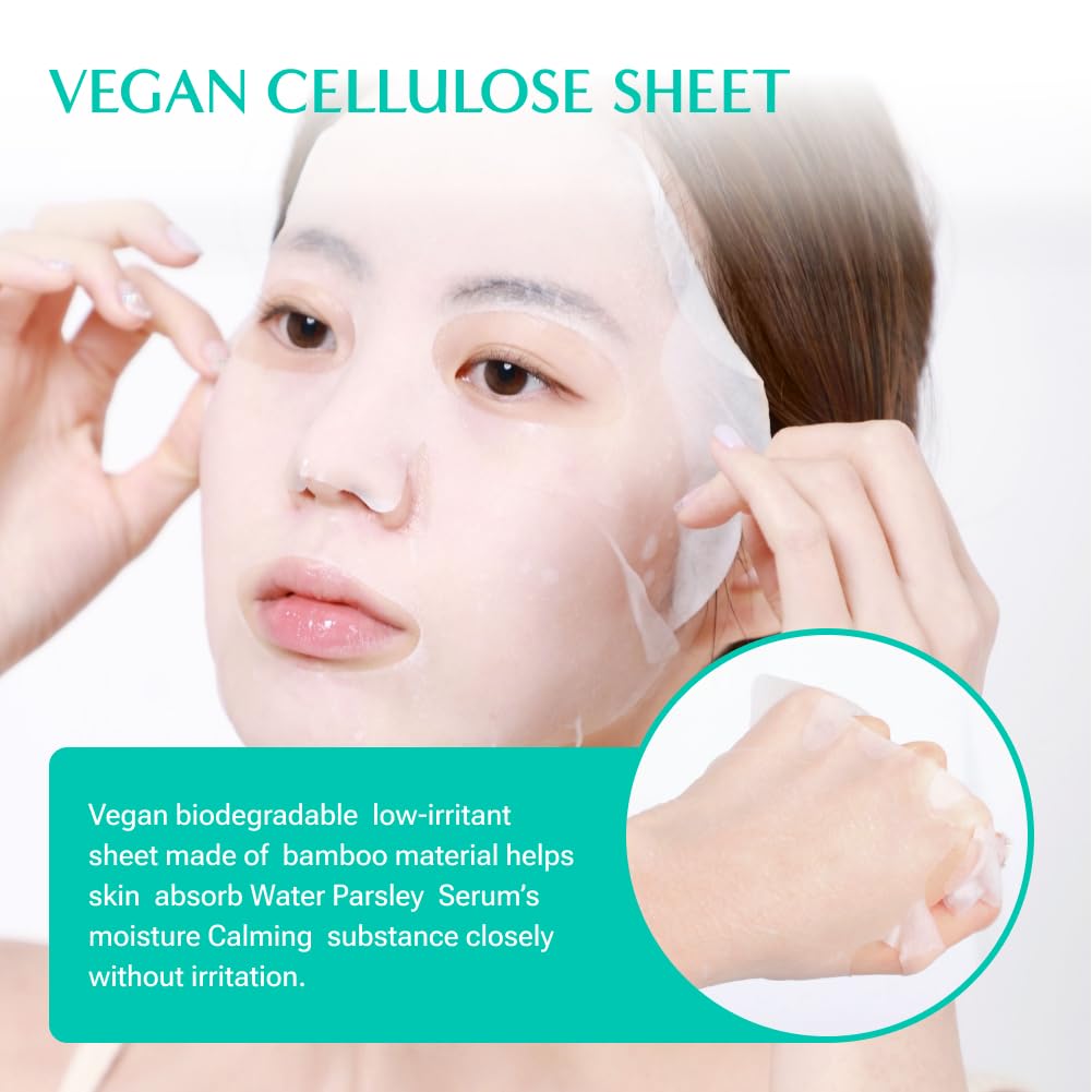 Water Parsley Serum-Infused Sheet Mask : This Vegan Cellulose Sheet Mask Is Fully Loaded With Water Parsley Serum To Provide Immediate Skin Soothing And Moisture, Hydrating Your Skin. It Adheres Well To The Skin