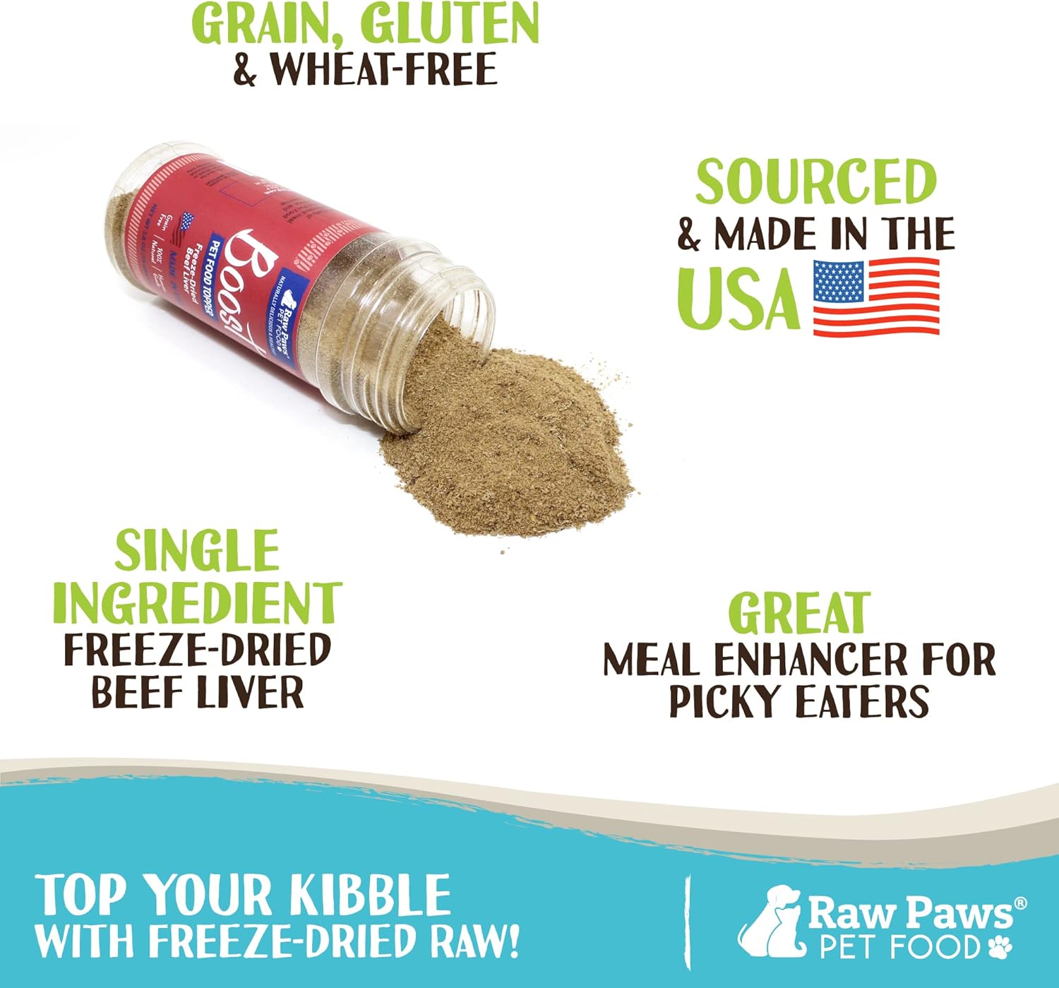 Raw Paws Boost Pet Food Topper Freeze-Dried Beef Liver, 3.2-Oz, Made In Usa, Dog Food Toppers For Picky Eaters, Cat Gravy Dog Gravy Topper For Dry Food, Beef Liver Sprinkles For Dogs, Cat Food Toppers