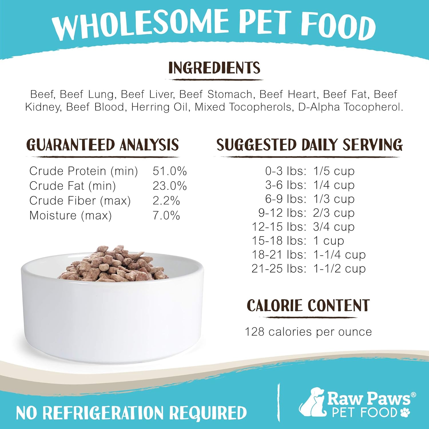 Raw Paws Freeze Dried Dog Food & Cat Food - Beef Recipe, 16-Oz - Made In Usa - Freeze-Dried Dog Food - Freeze Dried Raw Dog Food - Raw Dog Food Freeze Dried - Raw Food For Dogs - Freeze Dried Cat Food