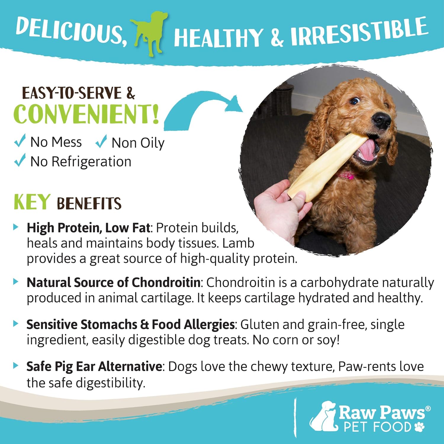 Raw Paws Lamb Hide Chews For Dogs Are Packed With Health Benefits! Our Lamb For Dogs Is Sourced From Healthy Flocks Responsibly Raised On Family Farms With No Added Hormones Or Antibiotics. Made Without Preservatives, Additives, Fillers Or Artificial Ingredients, These Lamb Chew Sticks For Dogs Make Safe And Healthy Traditional Rawhide Alternative For Dogs Of All Ages! These Lamb Hide Dog Chews Are A Great Option To Offer Your Pooch As A Suitable Outlet For Pent-Up Energy. The Abrasive Act Of Chewing On Our Rawhide Chips For Dogs Scrapes Away Plaque And Tartar Build-Up, Cleaning Your Dog'S Teeth And Gums Naturally. In Addition To Being Good For Dog Oral Care, Chewing Is Also Good For Mental Health. Dogs Naturally Have The Urge To Chew. You Can Satisfy This Urge While Reducing Anxiety And Boredom And Increasing Mental Stimulation When You Give Your Furry Friend Dog Lamb Sticks! Raw Paws Pet Food Is A Family Owned Business That Believes Having A Happy Pet Is Through The High Quality Nutrition. That'S Why We Use Only The Fresh, All-Natural Ingredients To Make These Mouthwatering Dog Chews Lamb Recipe! When You Shop With Raw Paws Pet Food You Can Have Peace Of Mind Knowing That You'Re Giving Your Dog Only A Healthy Hide Chews For Dogs! Dog Chew Lamb Hide From Our Family To Yours: We Only Use Responsible And Ethical Sources, So You High-Quality Products Made With Wholesome Ingredients! Our Chew Hides For Dogs Are Inspected And Hand-Packed In Our Indianapolis Facility! Dental Sticks For Dogs: The Abrasive Act Of Chewing On Lamb Rawhide Sticks Helps Keep Teeth And Gums Healthy By Clearing Away Build-Up, Keeping Mouths Clean And Breath Fresh. Entertain Your Pet While Supporting Their Health With Lamb Dental Chews For Dogs! Premium Dog Anxiety Relief: Canines Instinctively Have The Urge To Chew- Fulfill This Craving By Giving Your Pups Healthy Hide Dog Chews! Chewing On Our Lamb Puppy Chews Increases Mental Stimulation, Helping To Improve Mood And Relieve Boredom, Anxiety And Frustration. 100% All-Natural Single Ingredient Slow Roasted Safe Chew No Added Hormones Healthy Energy Outlet Dog Teeth Cleaning Puppy Teething Sticks