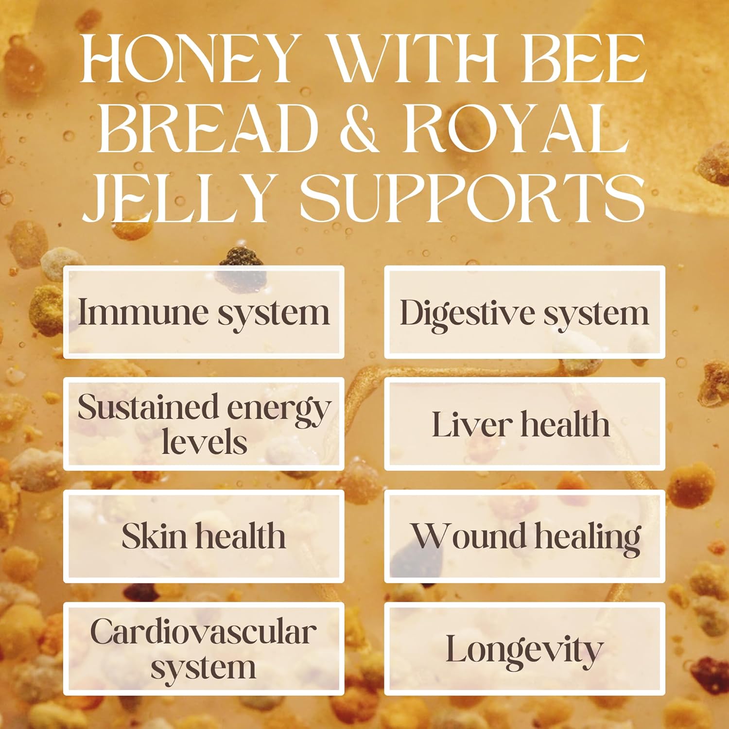 FERMENTED IN THE BEEHIVE: Bee Bread is highly nutritious and contains bioactive compounds that positively impact human health, making it a functional food. Rich in proteins, simple sugars, essential amino acids, and healthy omega fatty acids, regular consumption of Bee Bread supports immunity and aids the body in fighting off intruders