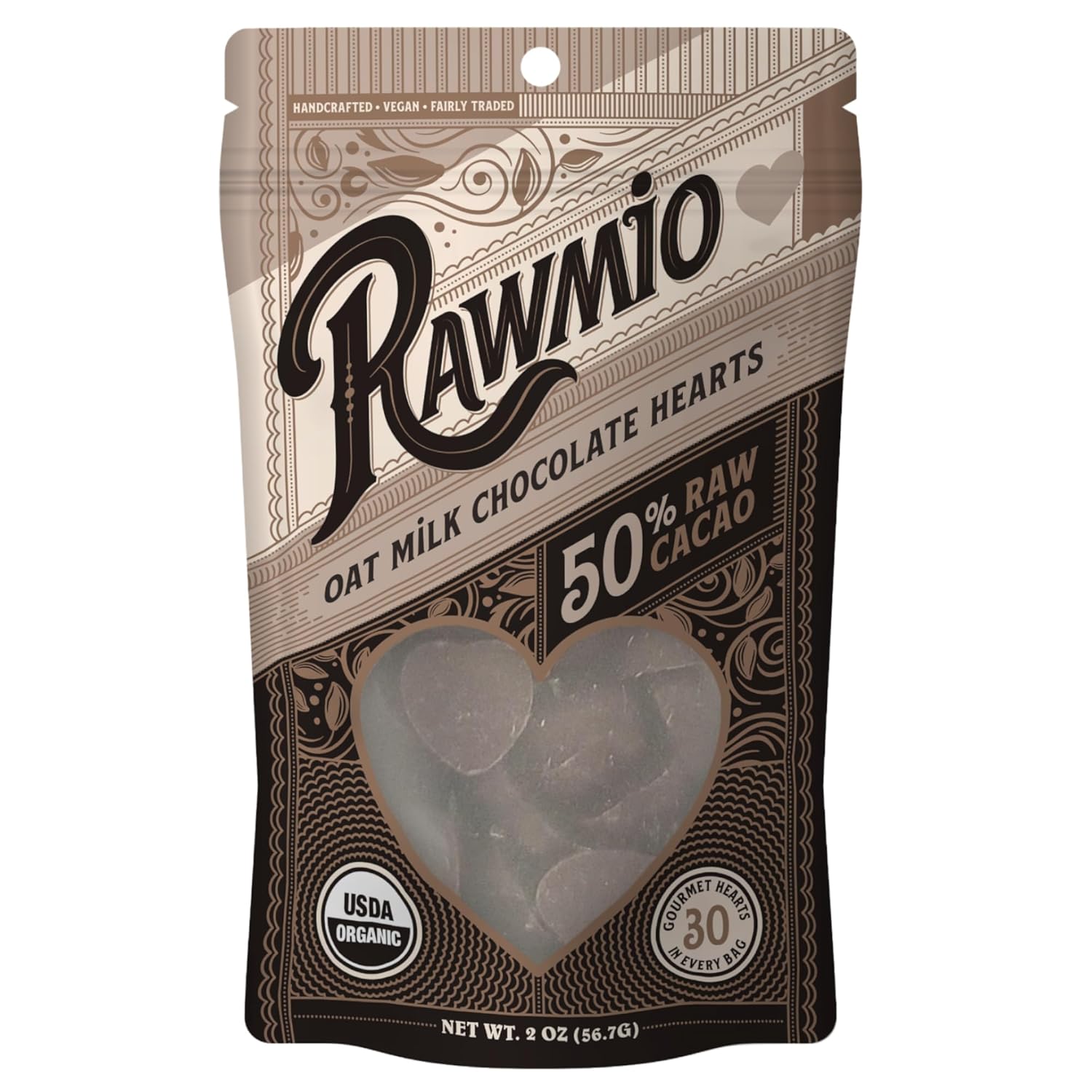 Rawmio Oat Milk Chocolate Hearts, 50% Cacao - 2 Oz - Raw, Organic, Vegan, Fair Trade