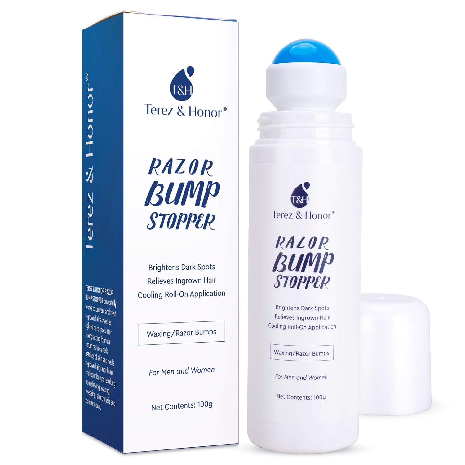 ABOUT THE PRODUCT: 1 > Prevents Razor Bumps Finally, a beauty method to effectively prevent razor bumps and make shaving and waxing a delightful experience again 2 > Reduces Redness With our razor bump stopper roll-on, you’ll be able to reduce redness from shaving and waxing almost immediately 3 > Soothes Skin Shaving can cause irritation, burning sensation, itchiness, and more. Once you put on TEREZ & HONOR Razor Bump Stopper roll-on, you’ll experience a cooling sensation to soothe your skinRazor Bump and Ingrown Hairs Serum - After Shave Solution Roll-On for Ingrown Hairs, Razor Burns and Razor Bumps for Men and Women (100g)