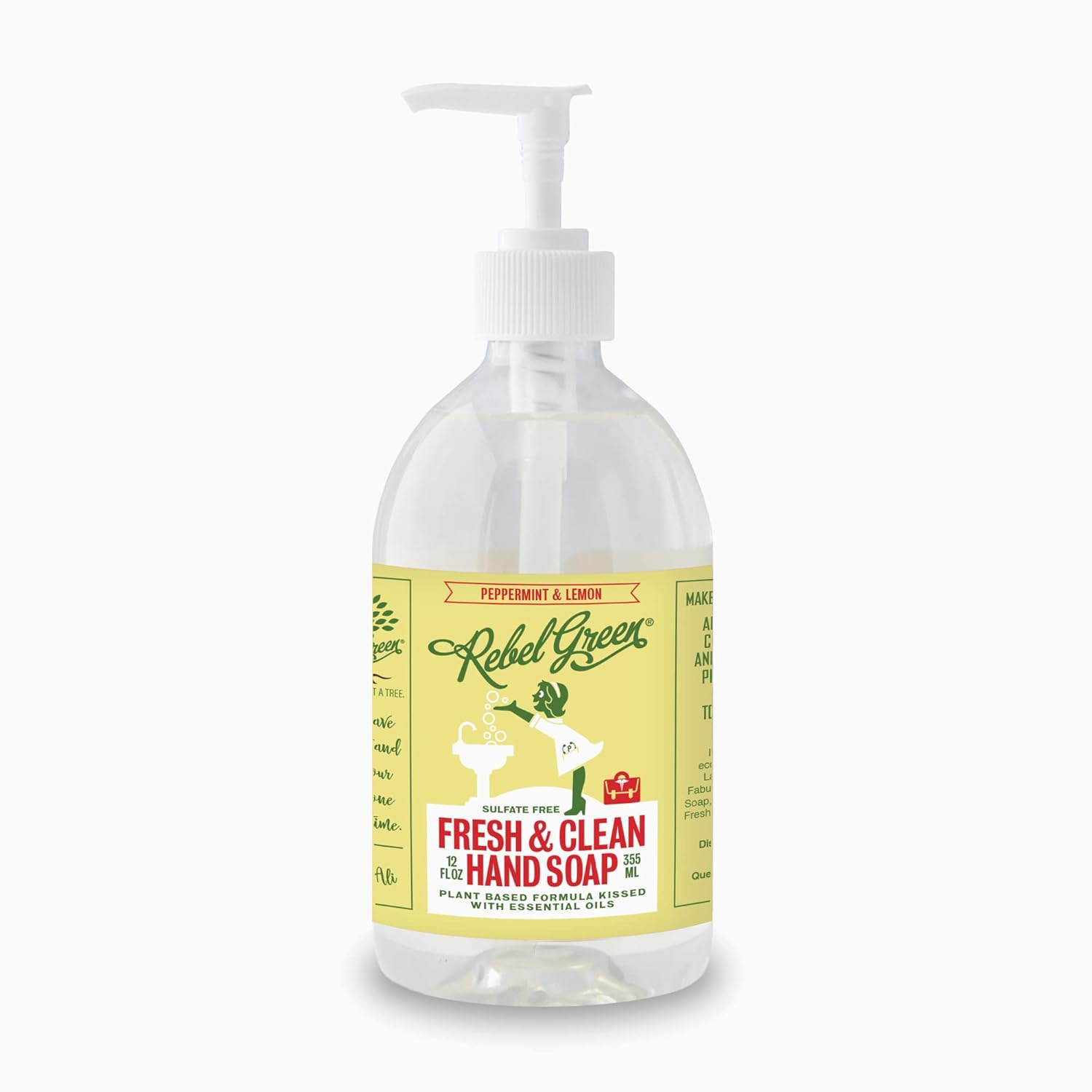 Rebel Green Liquid Hand Soap - Moisturizing Natural Bathroom & Kitchen Liquid Soap - Gentle Household Hand Wash with Fresh Peppermint & Lemon Scent - (1 Gallon Refill Bottle)