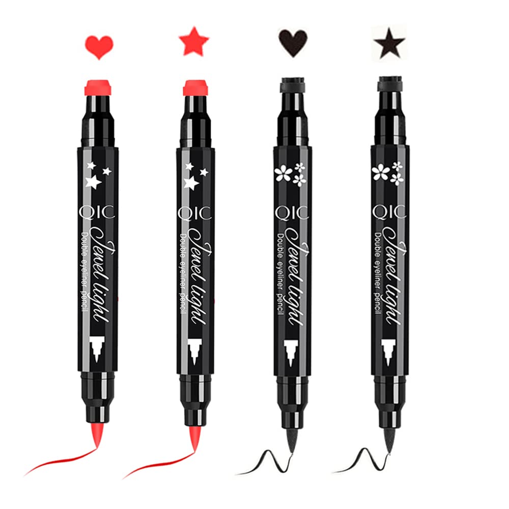 Package included: 1 * red heart shape dual-ended Eye Pen 1 * red star shape dual-ended Eye Pen 1 * black heart shape dual-ended Eye Pen 1 * black star shape dual-ended Eye Pen How to apply liquid eyeliner: 1. Draw along the upper lash line starting at the inner corner of the eye. 2. Extend the winged line up and out. 3. Let the formula dry for about 20 seconds. # More info: 1) Each pen is film-coated and well packed in a box. 2) With vegan, cruelty-free and hypoallergenic ingredients. 3) If the received item has any problems, please contact us via Amazon messages