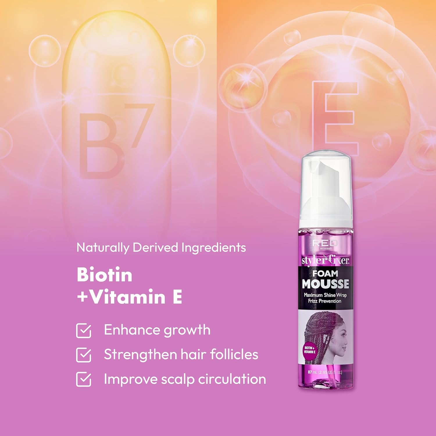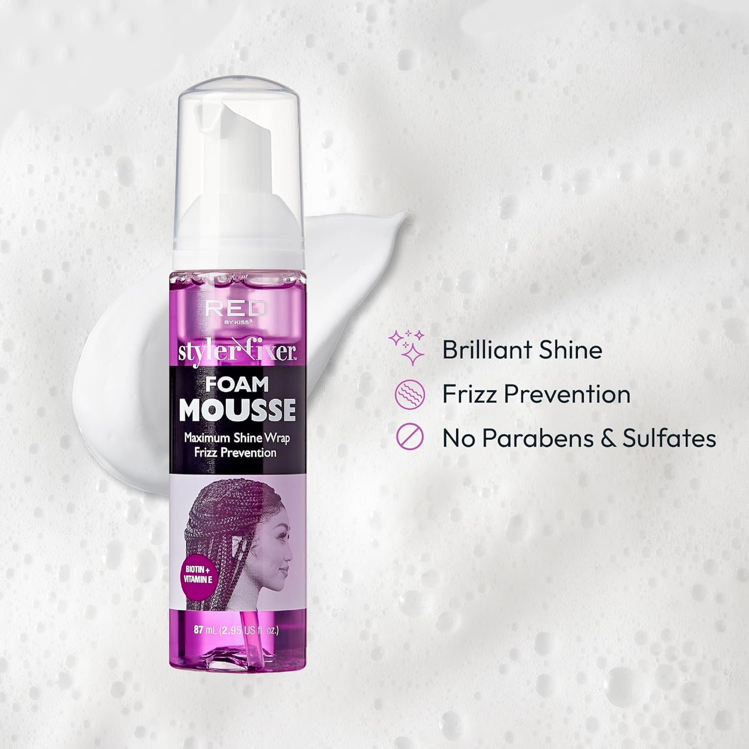 Red By Kiss Foaming Mini Travel Size Mousse, Maximum Shine Wrap Mousse, Reduce & Prevent Frizz, Define Curls, Hold Styles, Nourishes Dry & Crips Hair (Biotin + Vitamin E)