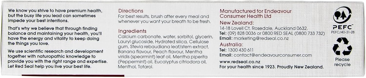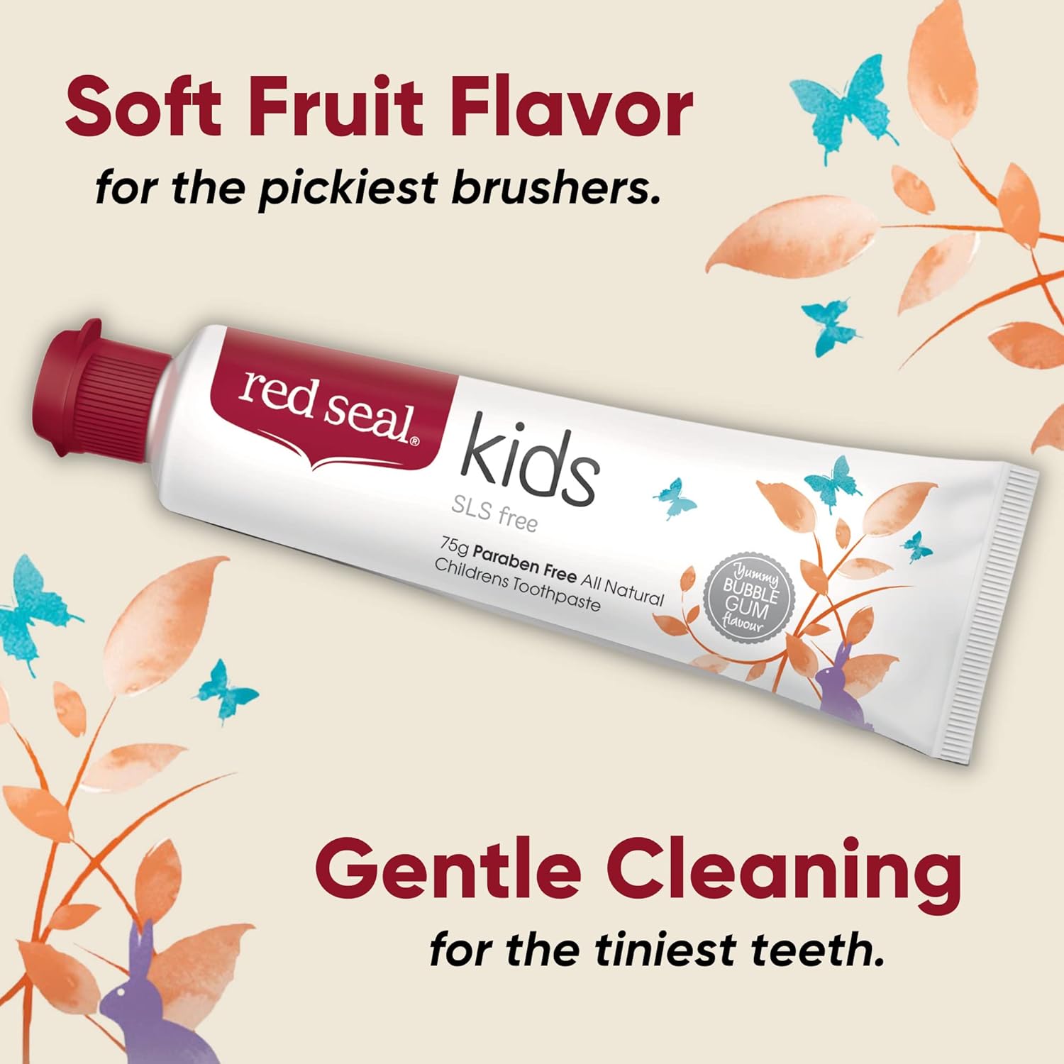 Red Seal Toothpaste for Kids Non Fluoride & No SLS or Parabens β Mild Banana Peach Bubblegum Low Mint Flavor, Safe to Swallow Cavity Low Abrasive Remineralizing Toothpaste for Children (2 Pack) : Health & Household