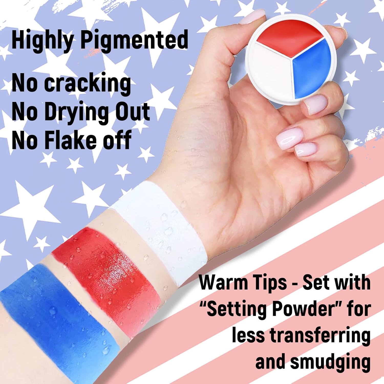 High-Quality Face Paint - Our face paint set includes 3 classic colors (red, white, and blue) to create a patriotic American flag design. The high-quality material ensures vibrant and long-lasting colors for 4th of July Independence Day, Halloween cosplay makeup, sports events, and more