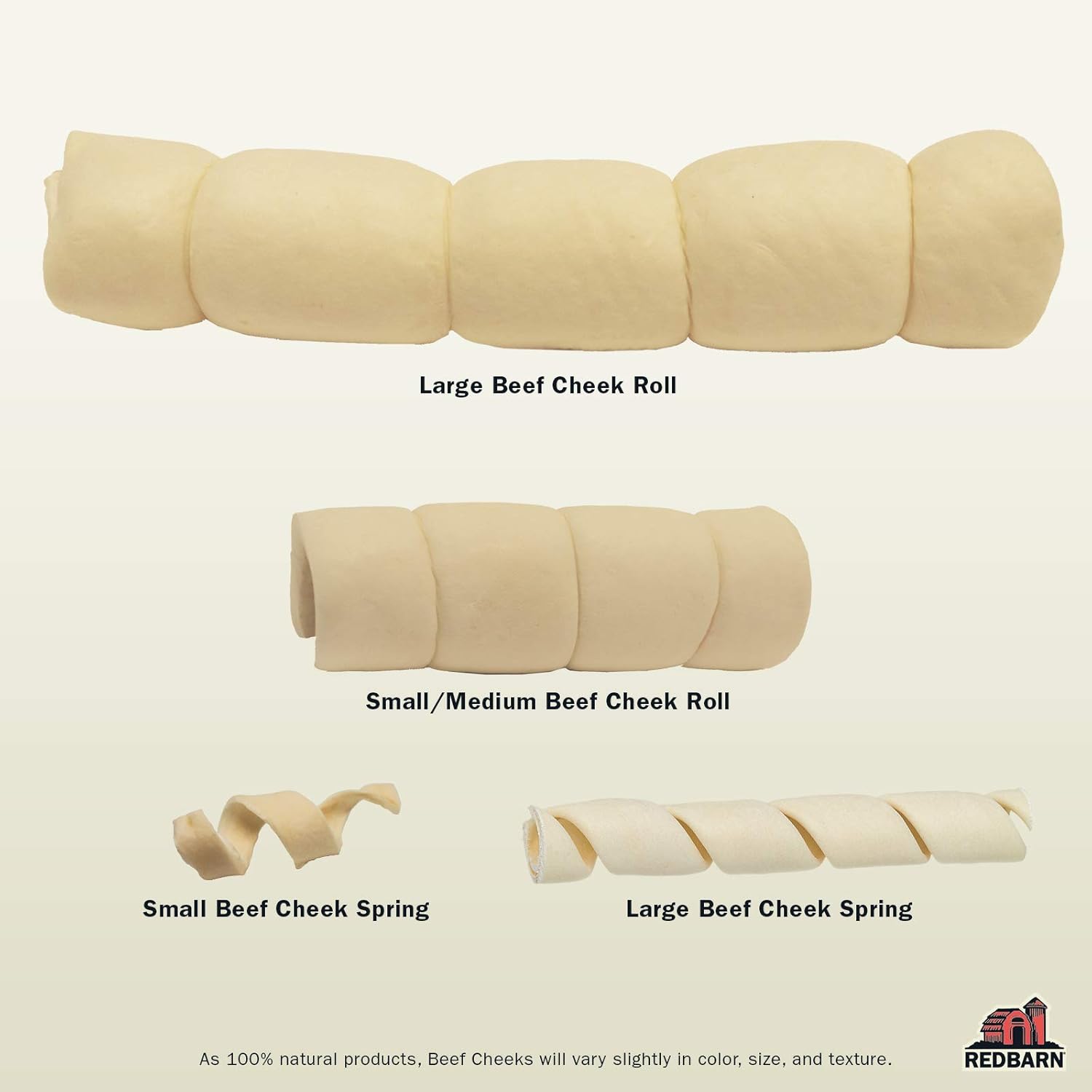 Redbarn All-Natural Large Beef Cheek Rolls For Dogs, Uncoated - Single Ingredient Grain-Free Chew Treat Naturally Rich In Collagen - No Artificial Preservatives - 4 Pack - Packaging May Vary