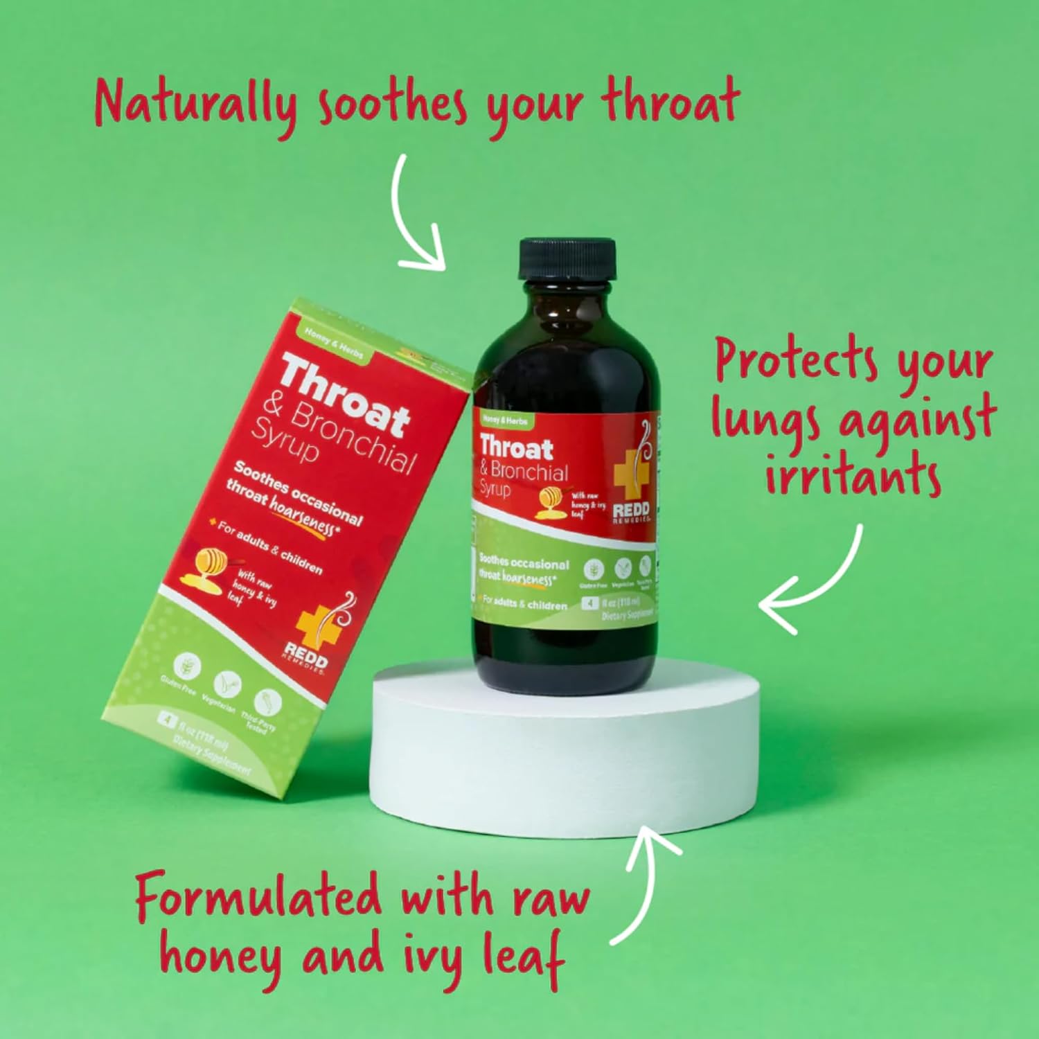 Redd Remedies, Throat & Bronchial Syrup, Honey & Herbs, 4 Oz (24 Doses)