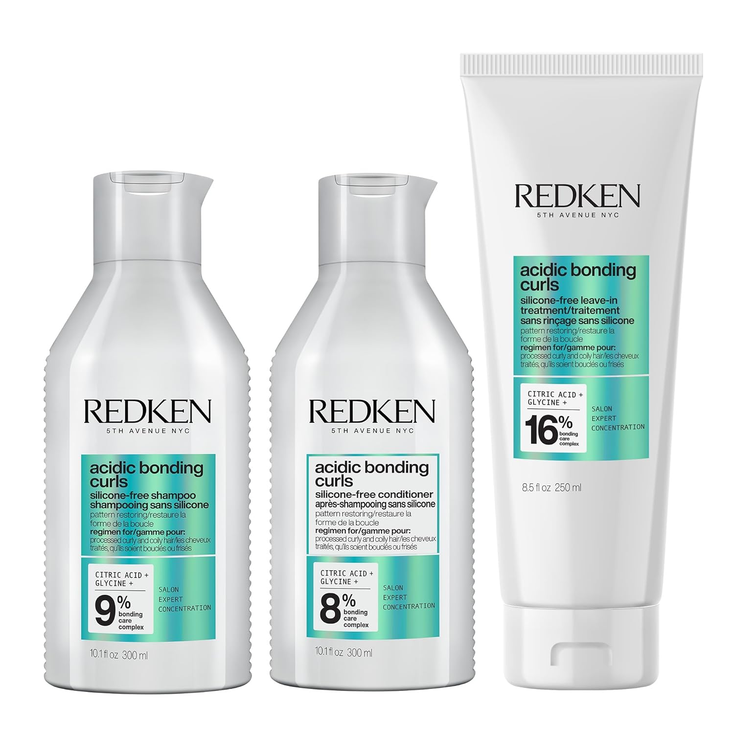 Redken Acidic Bonding Curls Shampoo, Conditioner & Leave-In Treatment Set | Curl Control + Definition | With Citric Acid, Avocado Oil, Shea Butter | Silicone-Free | For Coily And Curly Hair