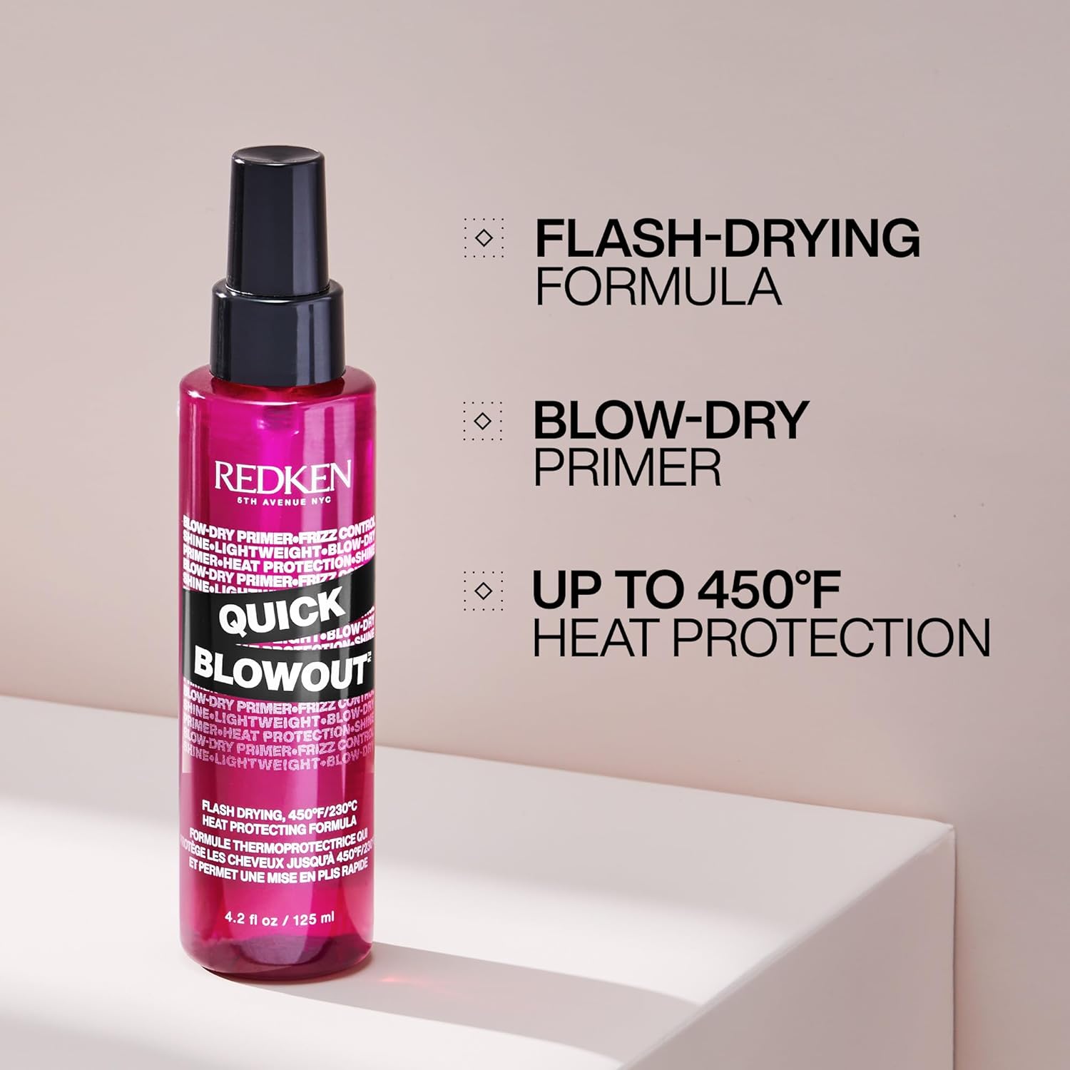 Redken Quick Blowout Heat Protection Spray | Blow Dry Primer To Reduce Styling Time | Smooths & Adds Shine | Lightweight Blowdry Heat Protectant Spray For Hair | For All Hair Types
