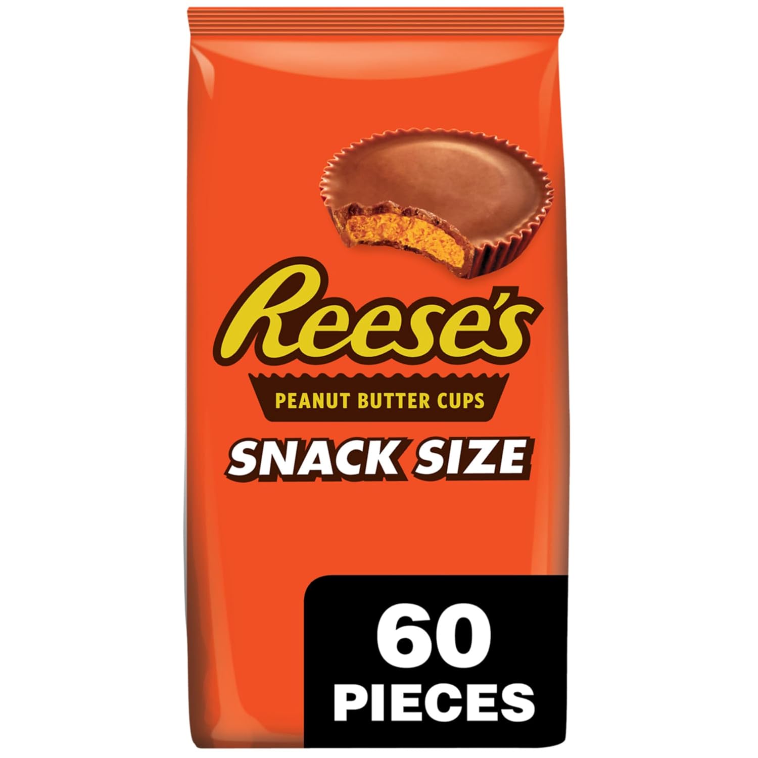 Reese'S Milk Chocolate Peanut Butter Snack Size Cups, Candy Bag, 33 Oz (60 Pieces)