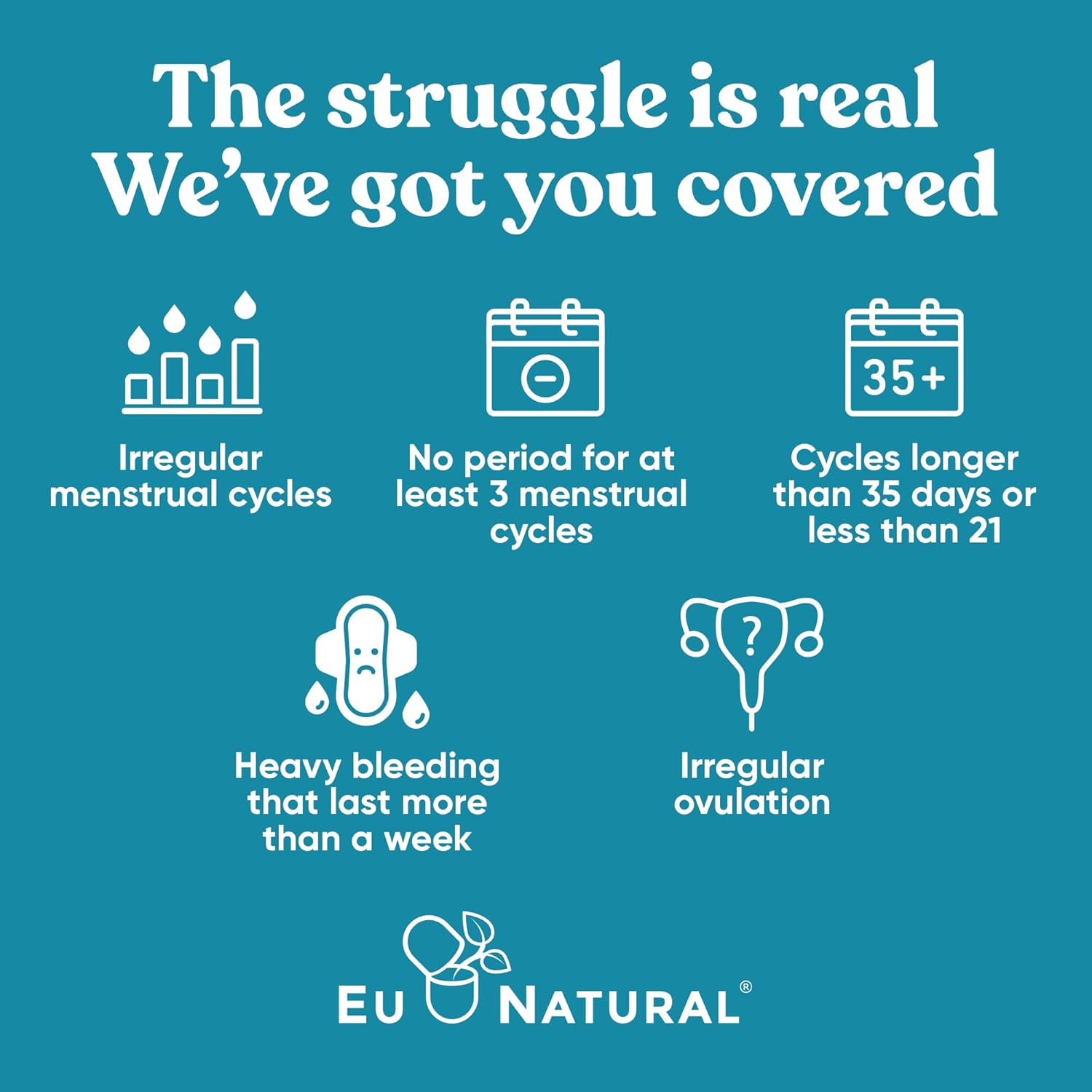 Regulate Menstrual Cycle Support – Hormone Balance For Women At Optimal 40:1 Myo-Inositol & D-Chiro Inositol – Pcos Supplement For Period Consistency, Menstrual & Ovulation Support – 90 Vegan Capsules