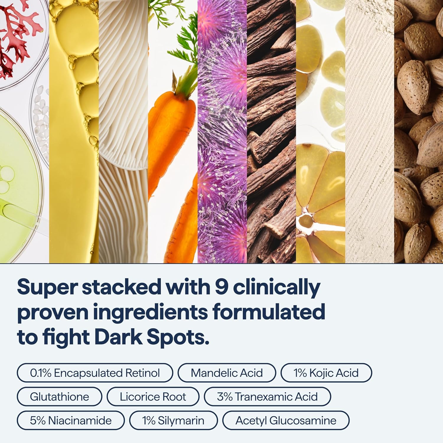 [9 Powerful And Proven Actives] Features 0.1% Encapsulated Retinol, Mandelic Acid, 1% Kojic Acid, Glutathione, Licorice Root, 3% Tranexamic Acid, 5% Niacinamide, Silymarin, And Acetyl Glucosamine