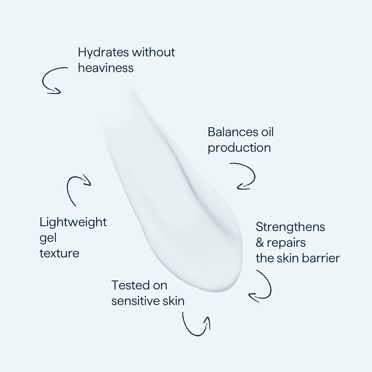 About this item [Lightweight Gel Cream Moisturizer] Delivers deep hydration in a non-greasy, breathable formula that balances oil production while strengthening the skin barrier. Made for oily to normal skin. [Board-Certified Dermatologist Developed Formula] Created by dermatologist Dr. Shah to provide lasting hydration while regulating sebum for a smooth, balanced complexion. [6 Hero Ingredients] Features Ceramide NP, Niacinamide, Squalane, Hyaluronic Acid, Glycerin, and Panthenol to hydrate, balance oil, and support skin barrier. [Non-Sticky Gel Cream Hybrid] Unique texture provides a fresh feel with a natural matte finish. Absorbs quickly while delivering deep hydration that lasts throughout the day. [Balances Skin] 95% said this moisturizer left skin feeling instantly soothed and instantly hydrated. [Do No Harm Philosophy] Common contact allergens and irritants excluded. Fragrance-free. Vegan and Cruelty Free. Clinically tested for effectiveness on sensitive skin. › See more product details,[Lightweight Gel Cream Moisturizer] Delivers deep hydration in a non-greasy, breathable formula that balances oil production while strengthening the skin barrier. Made for oily to normal skin,[Board-Certified Dermatologist Developed Formula] Created by dermatologist Dr. Shah to provide lasting hydration while regulating sebum for a smooth, balanced complexion,[6 Hero Ingredients] Features Ceramide NP, Niacinamide, Squalane, Hyaluronic Acid, Glycerin, and Panthenol to hydrate, balance oil, and support skin barrier,[Non-Sticky Gel Cream Hybrid] Unique texture provides a fresh feel with a natural matte finish. Absorbs quickly while delivering deep hydration that lasts throughout the day,[Balances Skin] 95% said this moisturizer left skin feeling instantly soothed and instantly hydrated,[Do No Harm Philosophy] Common contact allergens and irritants excluded. Fragrance-free. Vegan and Cruelty Free. Clinically tested for effectiveness on sensitive skin