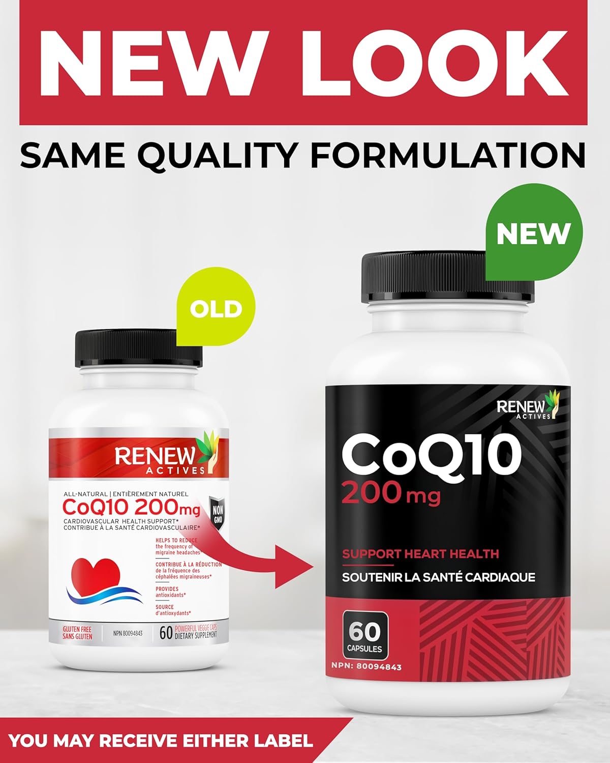 Renew Actives Coq10 Ubiquinone Supplement 200Mg Per Serving – Supports Heart Health, Migraine Relief, Immune System Boost Antioxidant Support & Energy – High Potency, Made In Canada - 60 Capsules