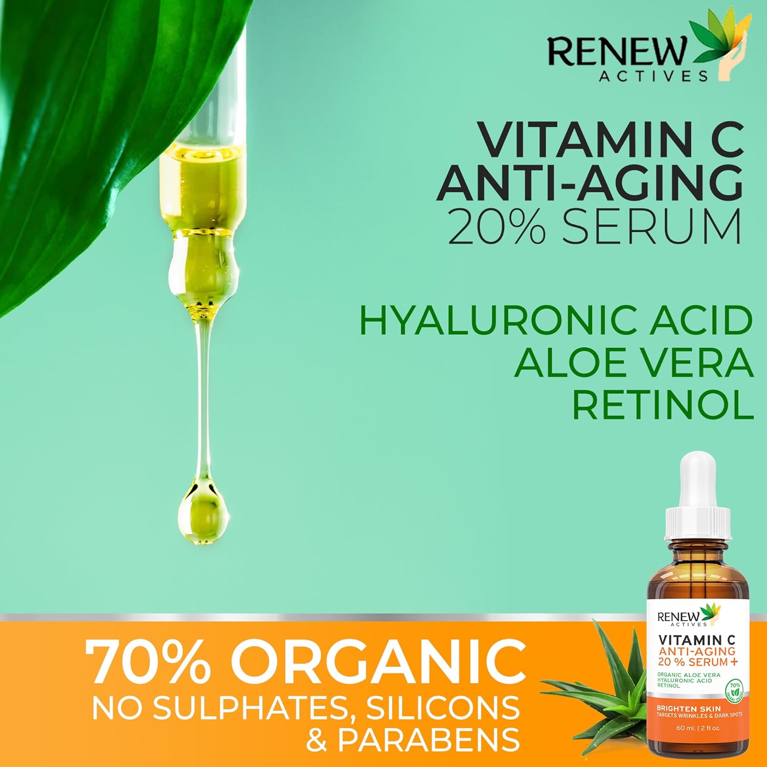 Renew Actives Vitamin C Serum - Brightening & Anti-Aging Formula - Reduces Dark Spots, Fine Lines & Wrinkles - Promotes Even Skin Tone - Hydrating & Antioxidant Protection - Made In Canada - 2 Fl Oz